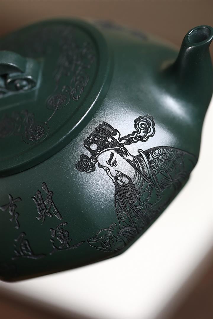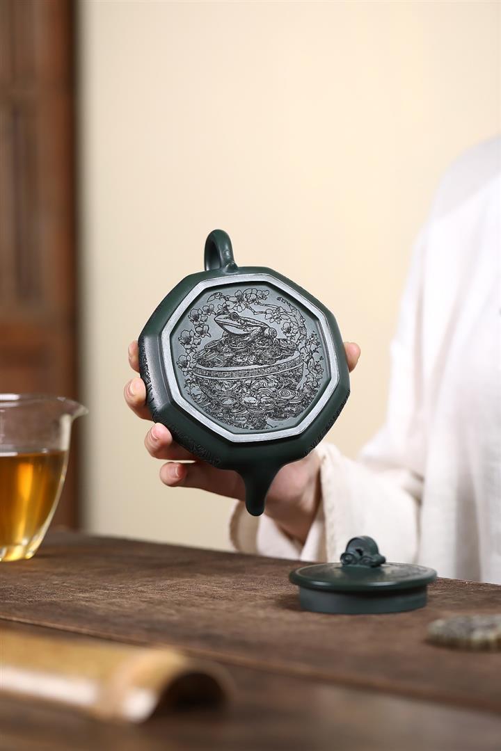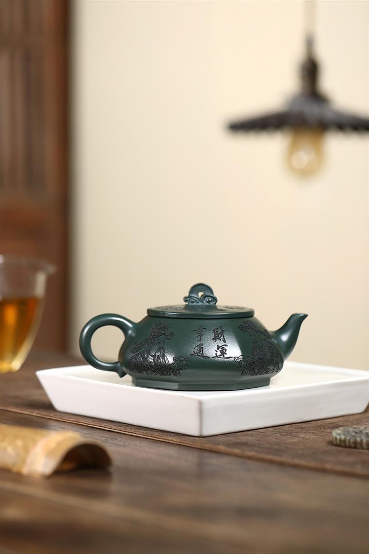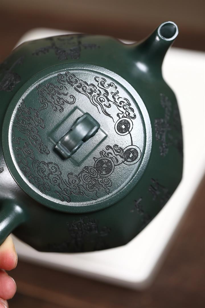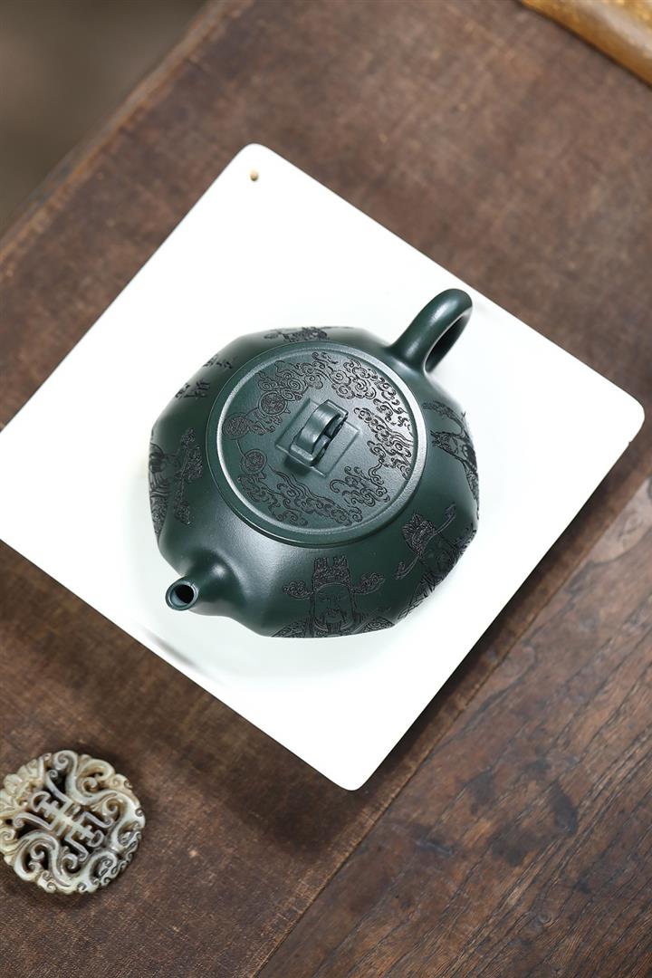 370cc原礦綠泥武財八方茶壺POT8497