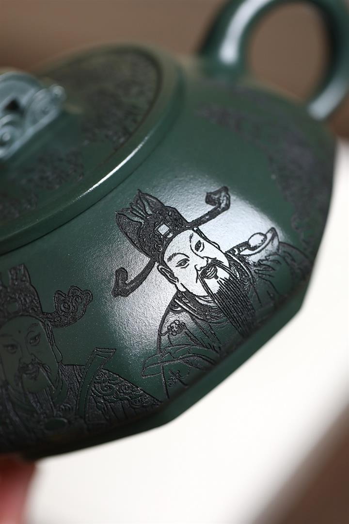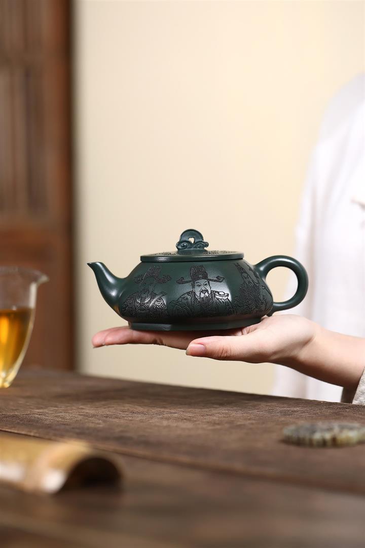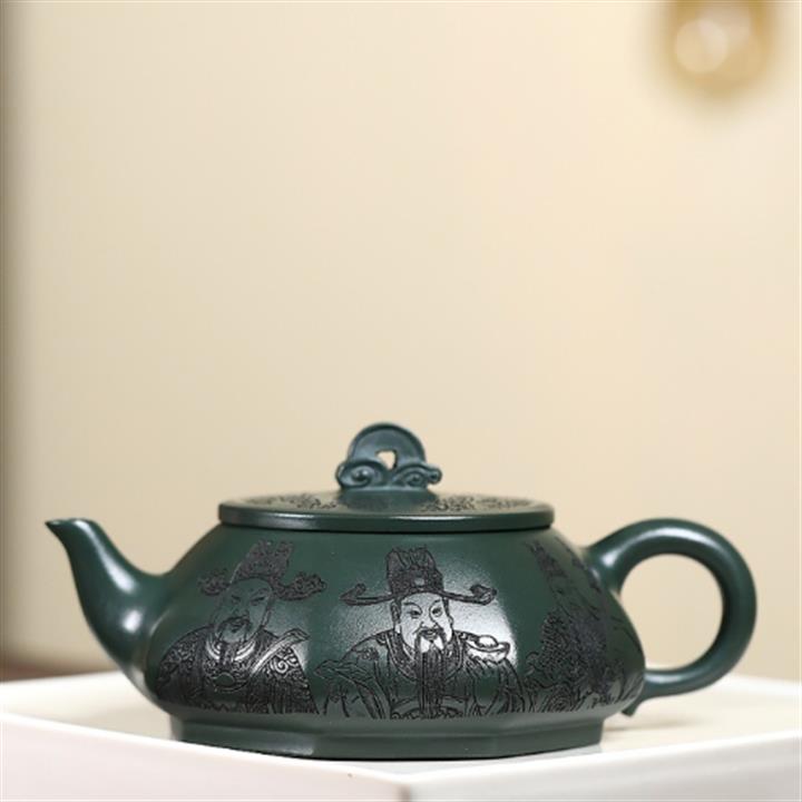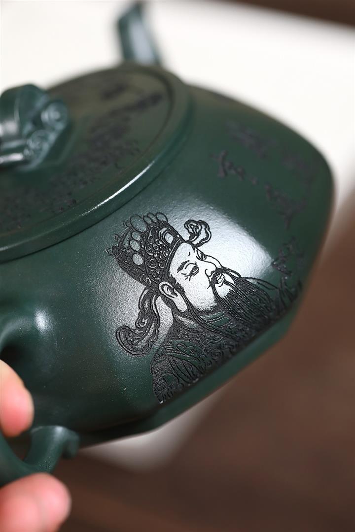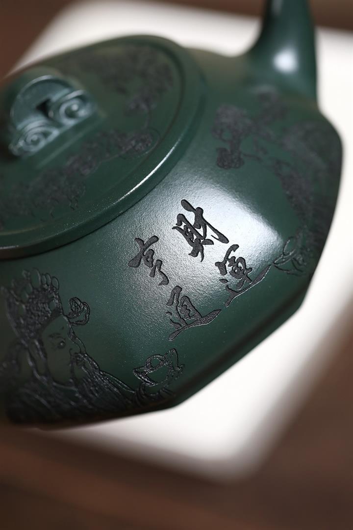 370cc原礦綠泥武財八方茶壺POT8497