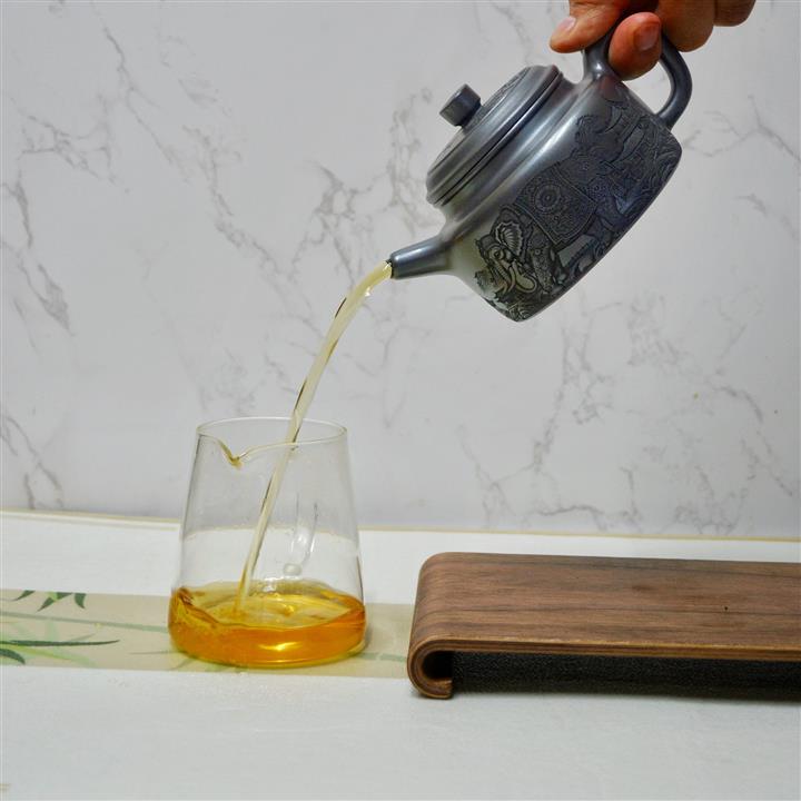【泥料特點】砂土氣重,似淳實農民,日久使用,漸露鋒芒,養成變化,溫潤莊重。紫砂是壹種雙重氣孔結構的多孔性材質,氣孔微細,密度高。用紫砂壺沏茶,不失原味,且香不渙散,得茶之真香真味。紫砂使用越久,壺身色澤越發光亮照人,氣韻溫雅。紫砂壺長久使用器身會因撫摸擦拭,變得越發溫潤光澤。