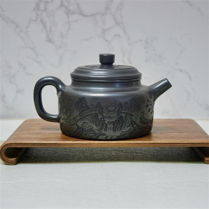 綠泥山水竹影紫砂壺POT5037