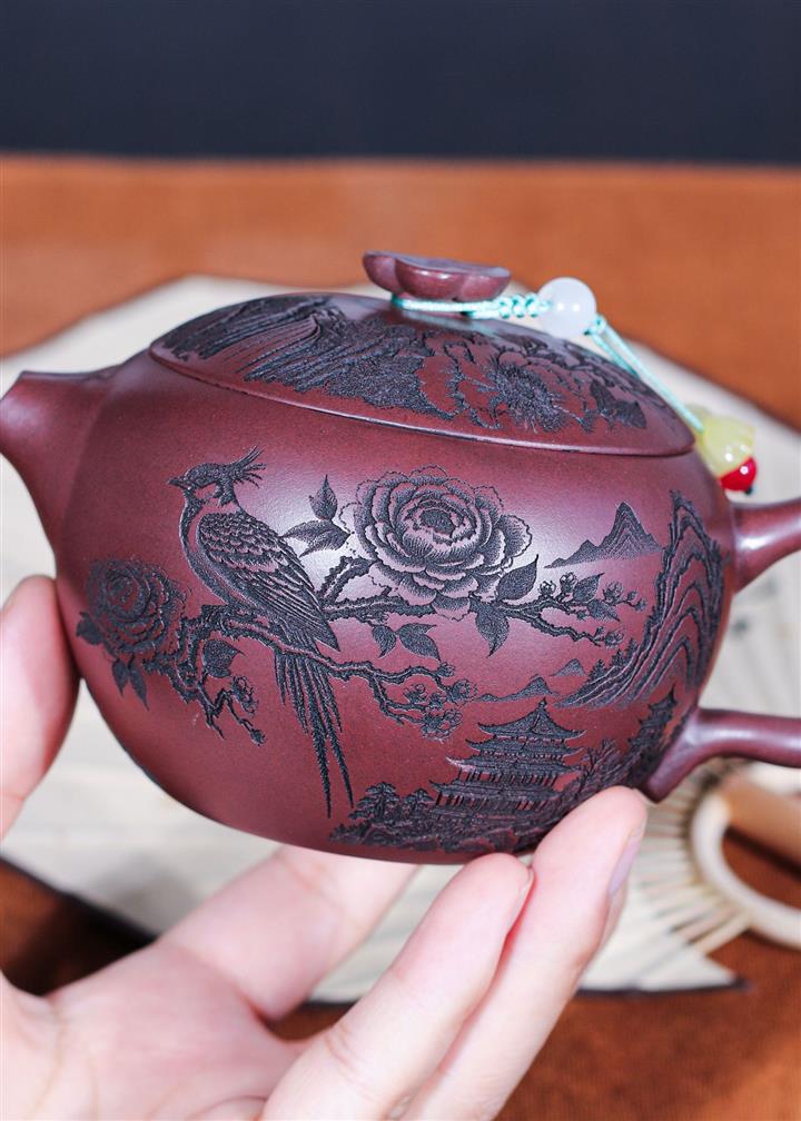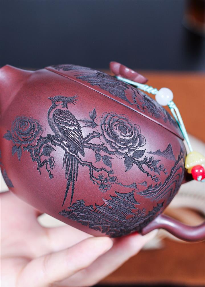 250cc原礦龍血砂泥瓊枝瑞羽茶壺POT8509