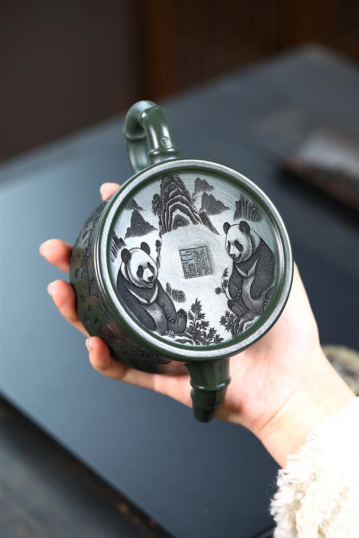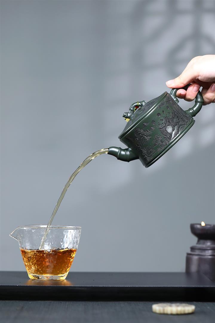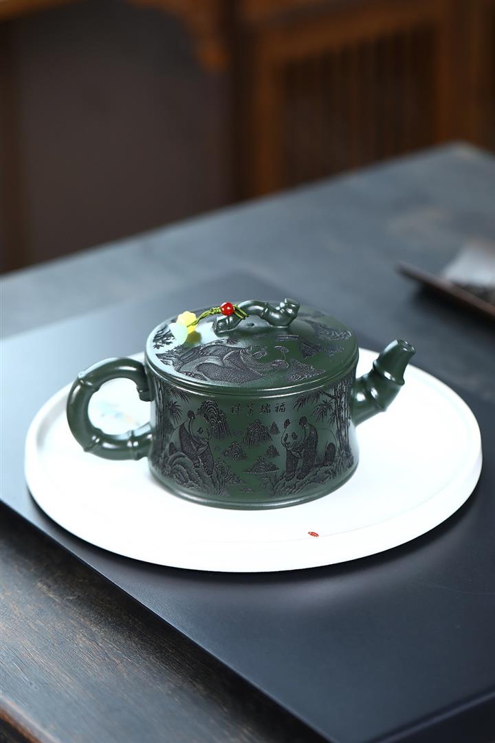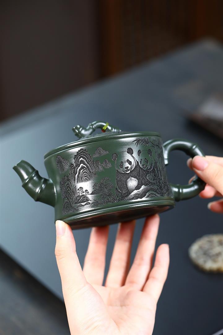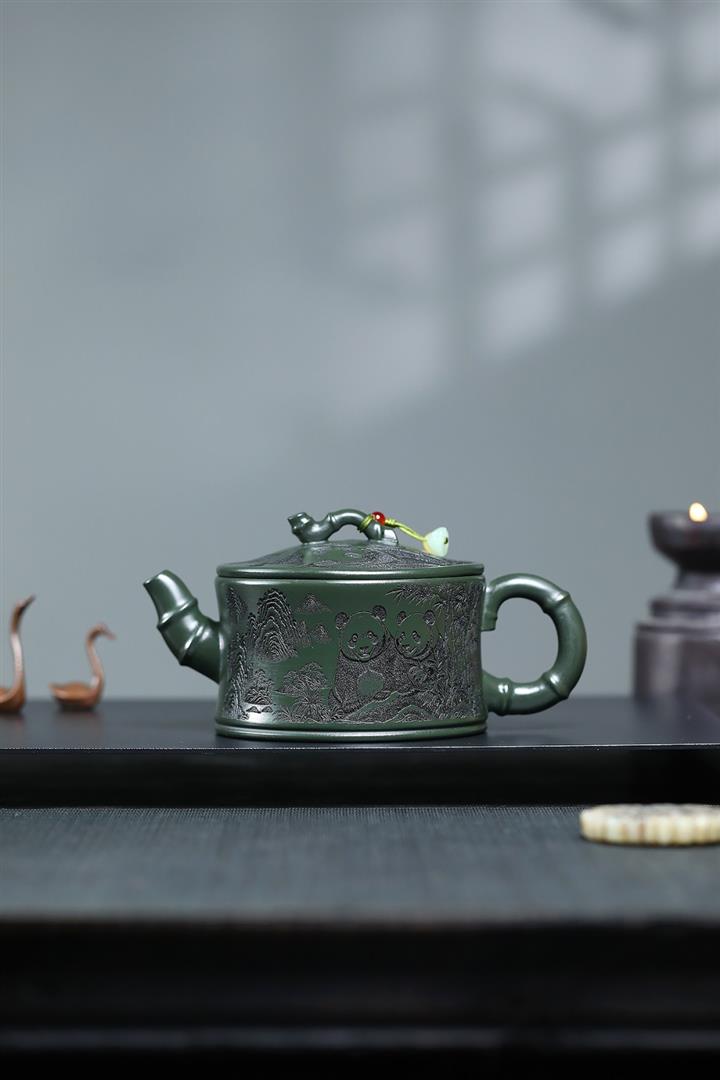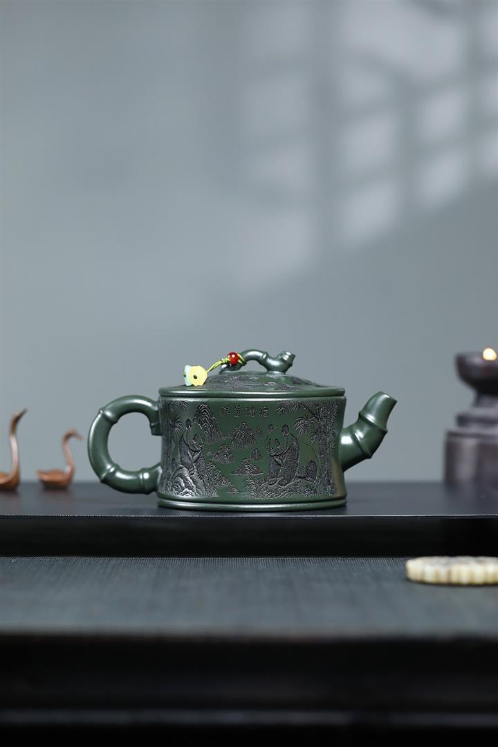 330cc原礦綠泥竹林隱士竹段茶壺POT8528