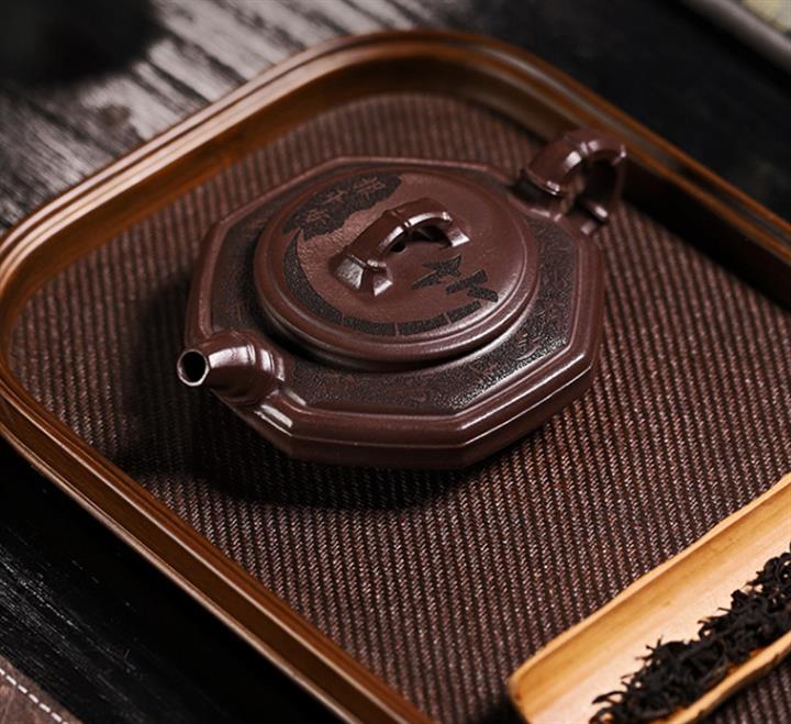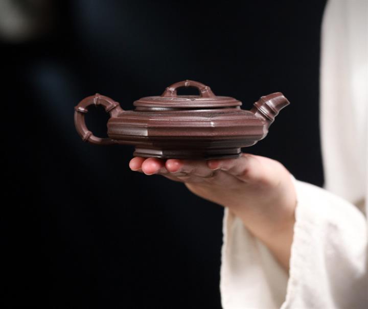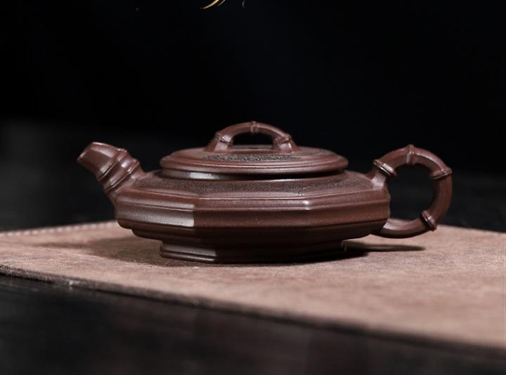160cc原礦紅皮龍紫砂雙線竹鼓茶壺POT8318