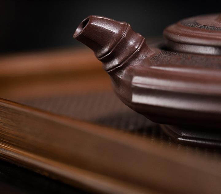 【泥料特點】砂土氣重,似淳實農民,日久使用,漸露鋒芒,養成變化,溫潤莊重。紫砂是壹種雙重氣孔結構的多孔性材質,氣孔微細,密度高。用紫砂壺沏茶,不失原味,且香不渙散,得茶之真香真味。紫砂使用越久,壺身色澤越發光亮照人,氣韻溫雅。紫砂壺長久使用器身會因撫摸擦拭,變得越發溫潤光澤。