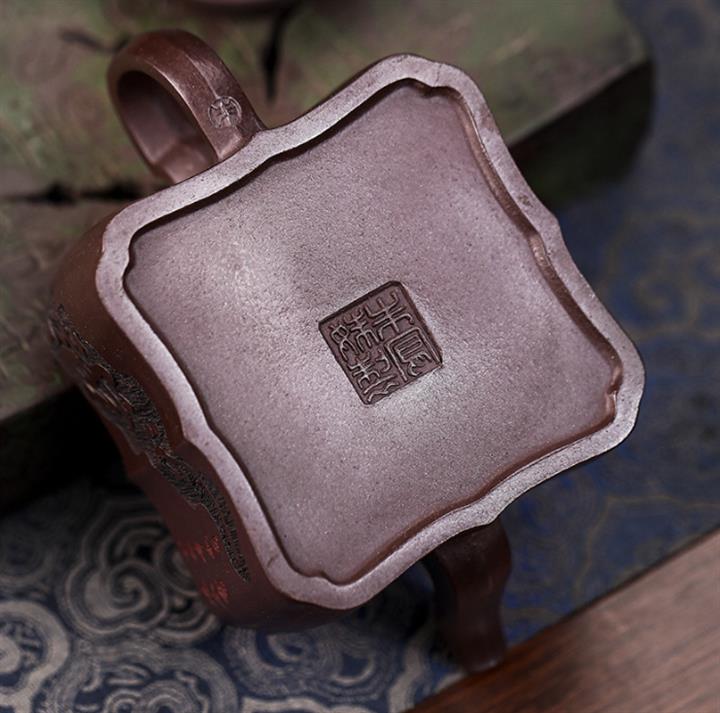660cc原礦石紅泥滿刻山河鶴影茶壺POT8551