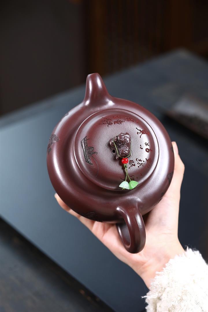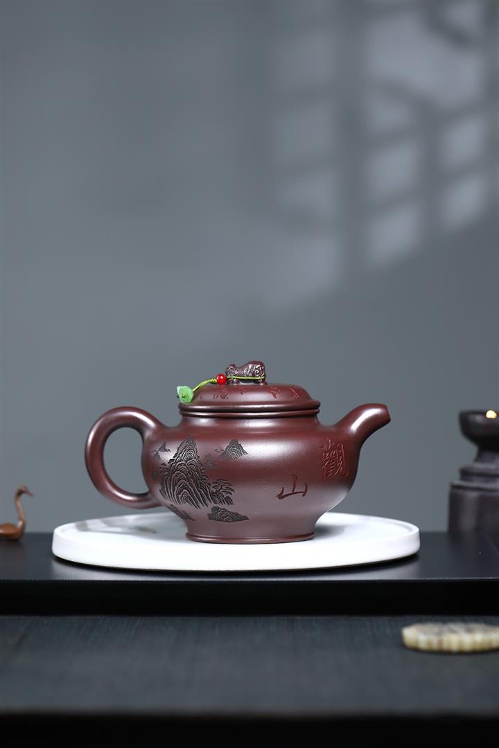 【作品介紹】此款壺形線條流暢,壺把,壺嘴,壺身壹氣呵成栩栩如生,是收藏把玩的好壺,泥料色澤古樸典雅,日久使用,漸露鋒芒,養成變化快,溫潤莊重,用其泡茶,使用的年代久,壺身就溫潤,泡出來的茶湯也就醇郁芳馨。