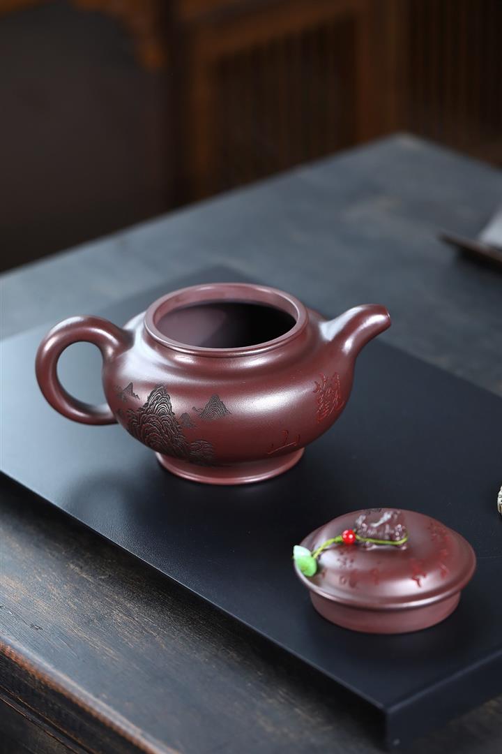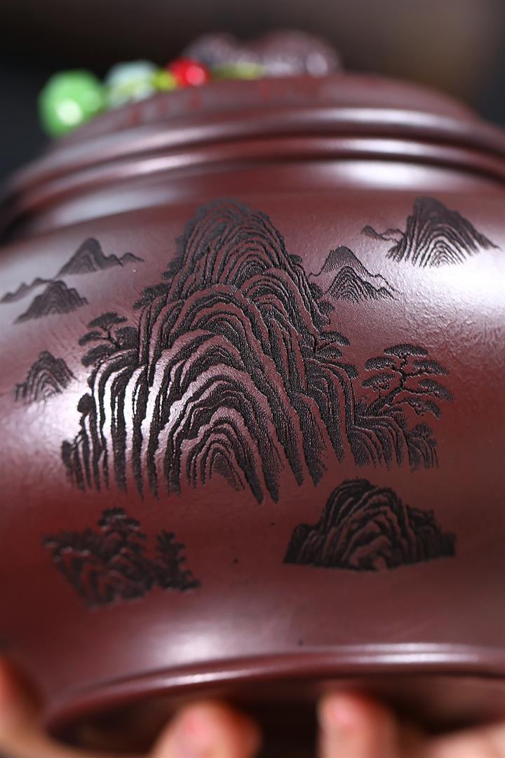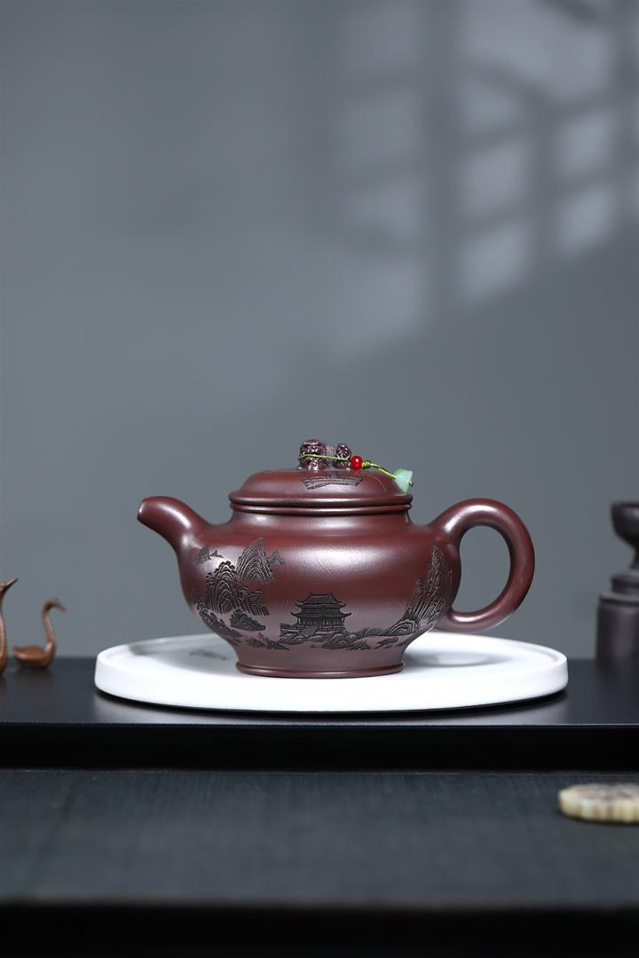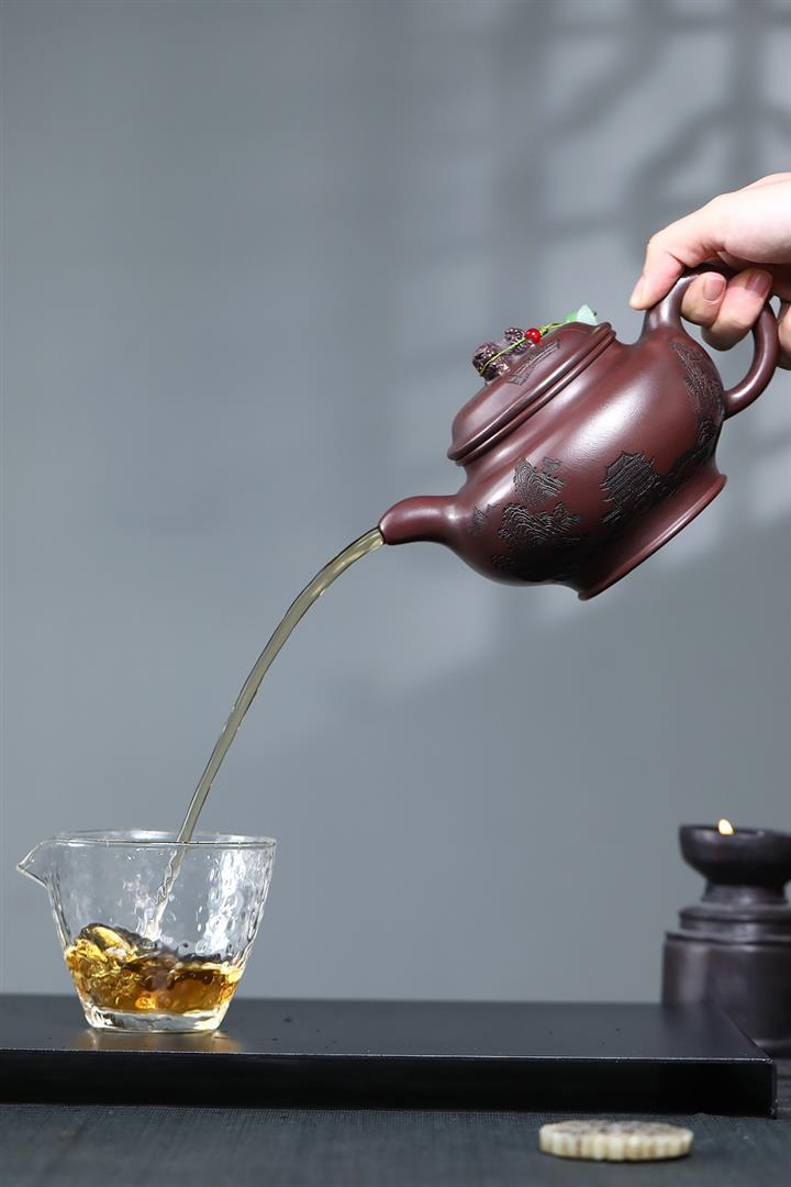 【泥料特點】砂土氣重,似淳實農民,日久使用,漸露鋒芒,養成變化,溫潤莊重。紫砂是壹種雙重氣孔結構的多孔性材質,氣孔微細,密度高。用紫砂壺沏茶,不失原味,且香不渙散,得茶之真香真味。紫砂使用越久,壺身色澤越發光亮照人,氣韻溫雅。紫砂壺長久使用器身會因撫摸擦拭,變得越發溫潤光澤。