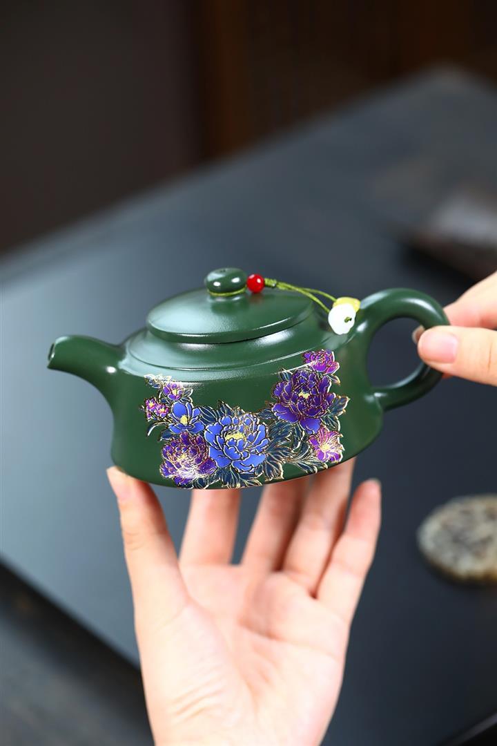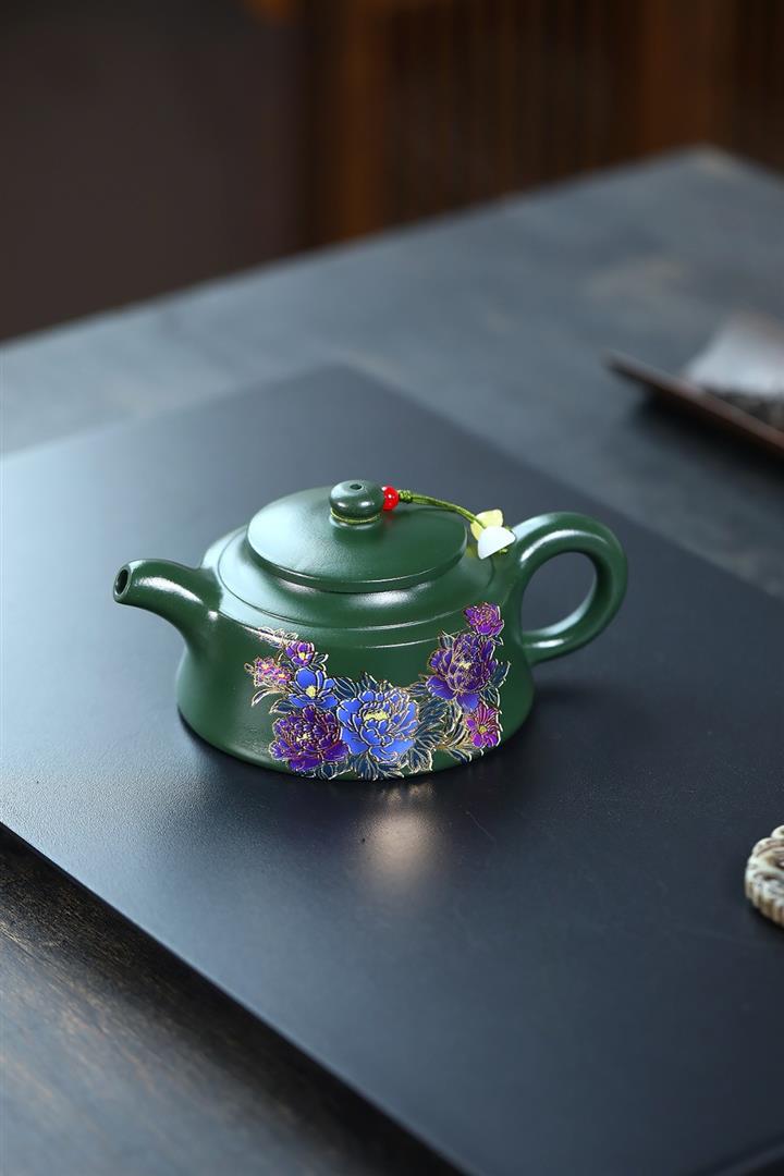 200cc原礦綠泥貼金丹金映翠泡茶壺POT8554