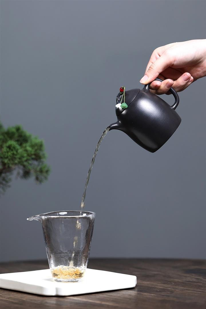 【泥料特點】砂土氣重,似淳實農民,日久使用,漸露鋒芒,養成變化,溫潤莊重。紫砂是壹種雙重氣孔結構的多孔性材質,氣孔微細,密度高。用紫砂壺沏茶,不失原味,且香不渙散,得茶之真香真味。紫砂使用越久,壺身色澤越發光亮照人,氣韻溫雅。紫砂壺長久使用器身會因撫摸擦拭,變得越發溫潤光澤。