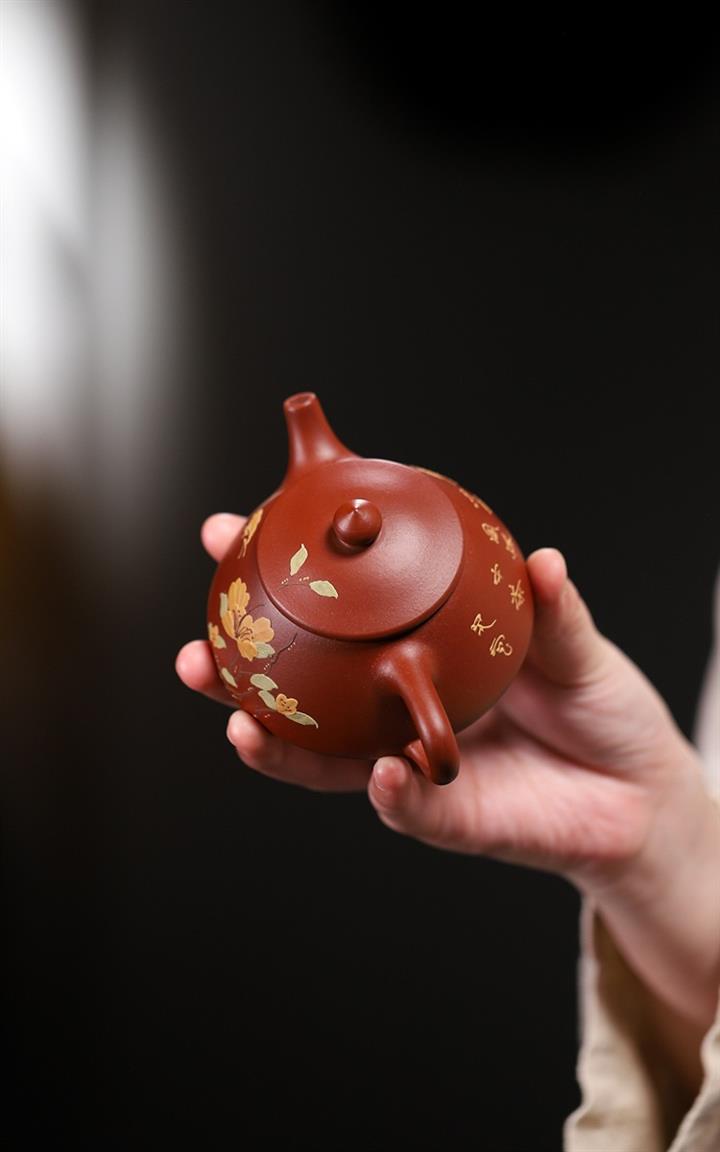 150cc原礦大紅袍泥繪石飄茶壺POT8569