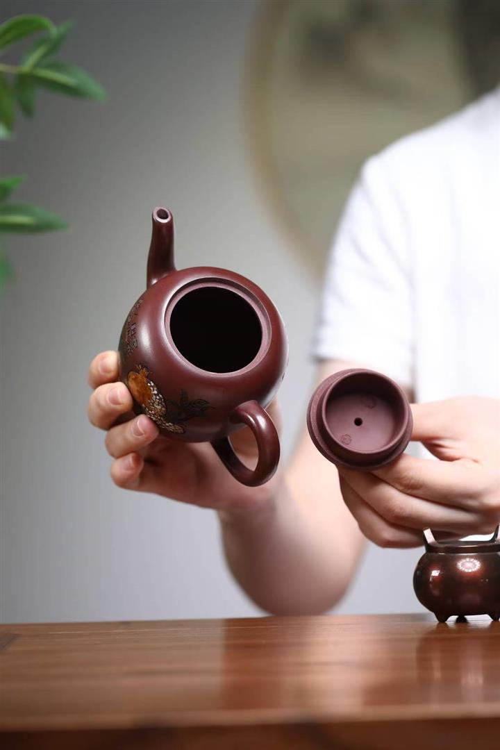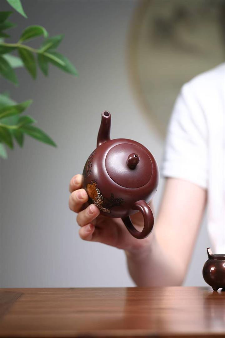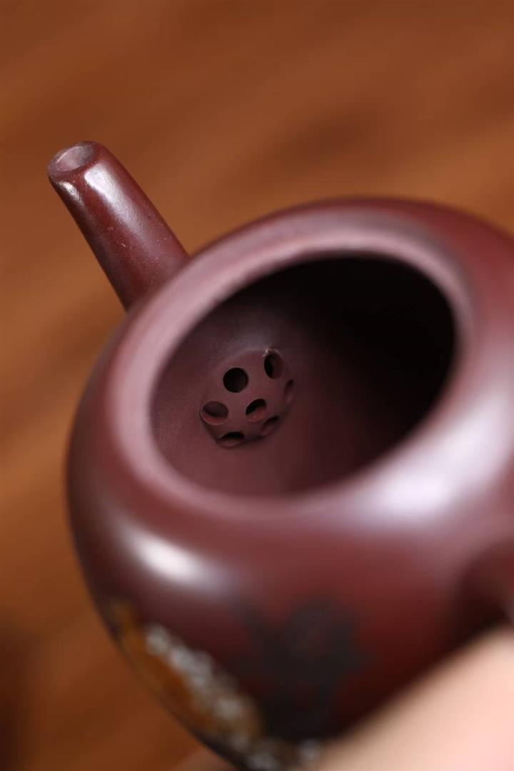 【作品介紹】此款壺形線條流暢,壺把,壺嘴,壺身壹氣呵成栩栩如生,是收藏把玩的好壺,泥料色澤古樸典雅,日久使用,漸露鋒芒,養成變化快,溫潤莊重,用其泡茶,使用的年代久,壺身就溫潤,泡出來的茶湯也就醇郁芳馨。