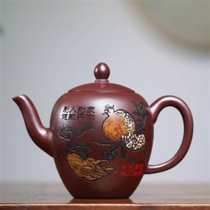 240cc原礦龍血砂彩繪美人肩茶壺POT8574