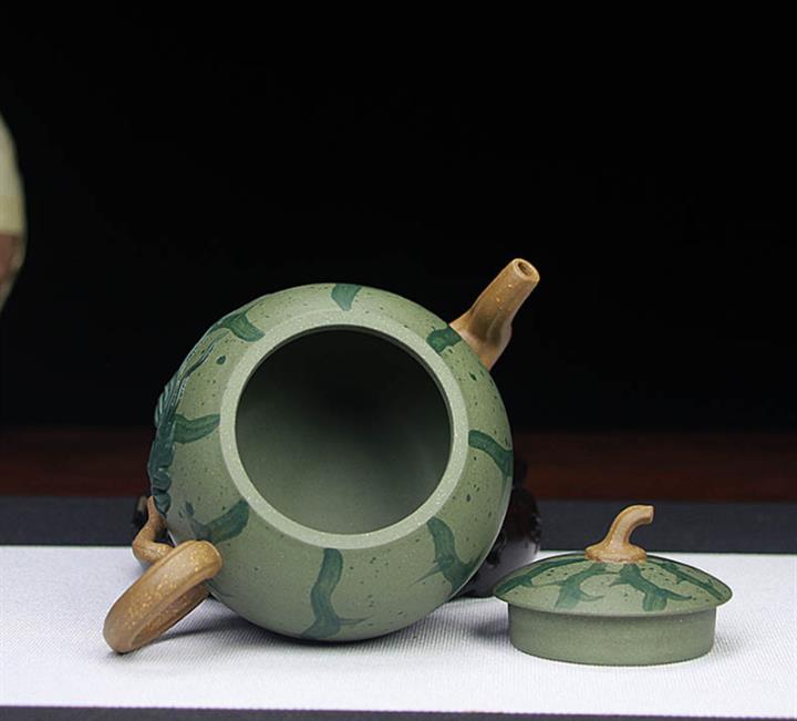290cc原礦豆青泥套裝西瓜茶壺POT8584