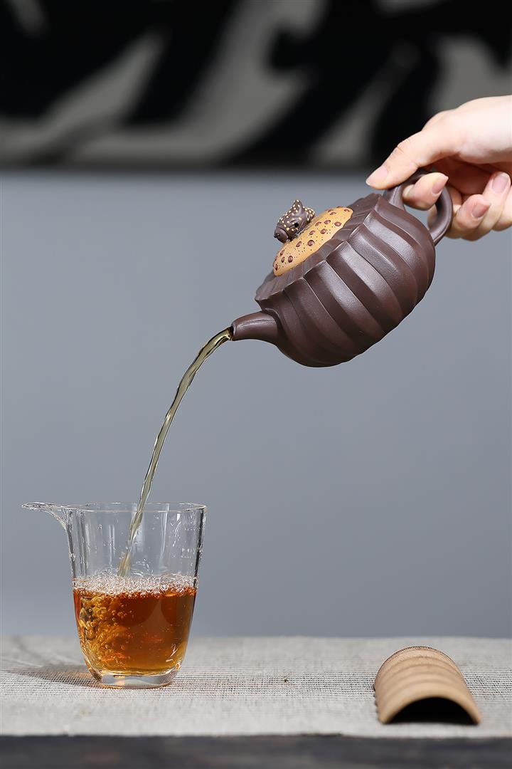 【泥料特點】砂土氣重,似淳實農民,日久使用,漸露鋒芒,養成變化,溫潤莊重。紫砂是壹種雙重氣孔結構的多孔性材質,氣孔微細,密度高。用紫砂壺沏茶,不失原味,且香不渙散,得茶之真香真味。紫砂使用越久,壺身色澤越發光亮照人,氣韻溫雅。紫砂壺長久使用器身會因撫摸擦拭,變得越發溫潤光澤。