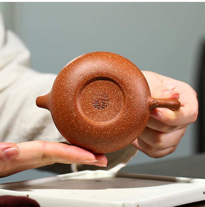 【泥料特點】砂土氣重,似淳實農民,日久使用,漸露鋒芒,養成變化,溫潤莊重。紫砂是壹種雙重氣孔結構的多孔性材質,氣孔微細,密度高。用紫砂壺沏茶,不失原味,且香不渙散,得茶之真香真味。紫砂使用越久,壺身色澤越發光亮照人,氣韻溫雅。紫砂壺長久使用器身會因撫摸擦拭,變得越發溫潤光澤。