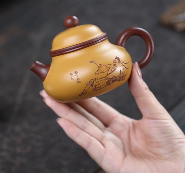 150cc原礦紫泥柴燒八方來財茶壺POT7962