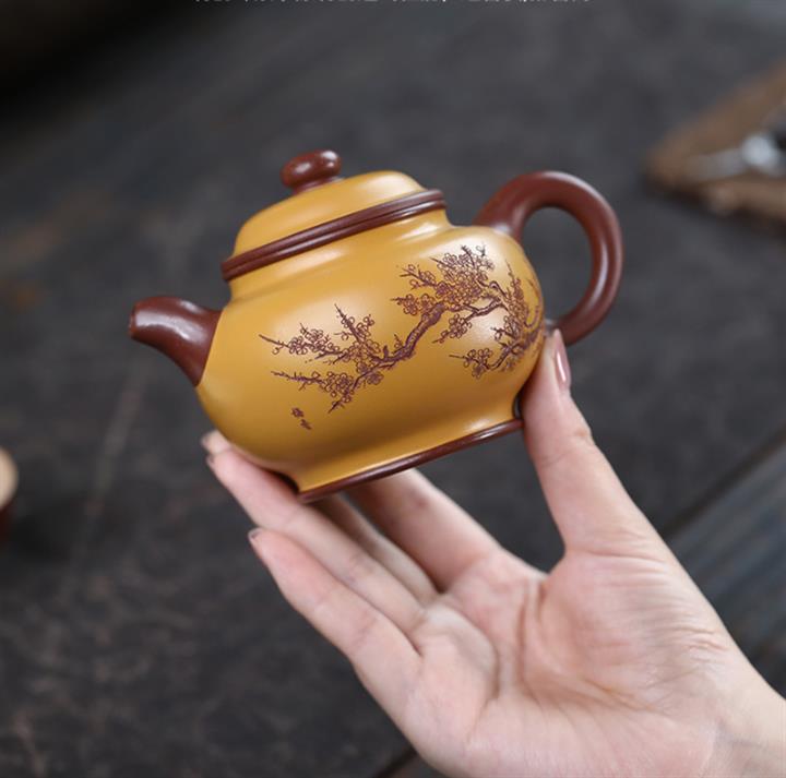 【作品介紹】此款壺形線條流暢,壺把,壺嘴,壺身壹氣呵成栩栩如生,是收藏把玩的好壺,泥料色澤古樸典雅,日久使用,漸露鋒芒,養成變化快,溫潤莊重,用其泡茶,使用的年代久,壺身就溫潤,泡出來的茶湯也就醇郁芳馨。