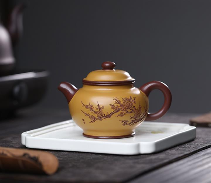 【泥料特點】砂土氣重,似淳實農民,日久使用,漸露鋒芒,養成變化,溫潤莊重。紫砂是壹種雙重氣孔結構的多孔性材質,氣孔微細,密度高。用紫砂壺沏茶,不失原味,且香不渙散,得茶之真香真味。紫砂使用越久,壺身色澤越發光亮照人,氣韻溫雅。紫砂壺長久使用器身會因撫摸擦拭,變得越發溫潤光澤。