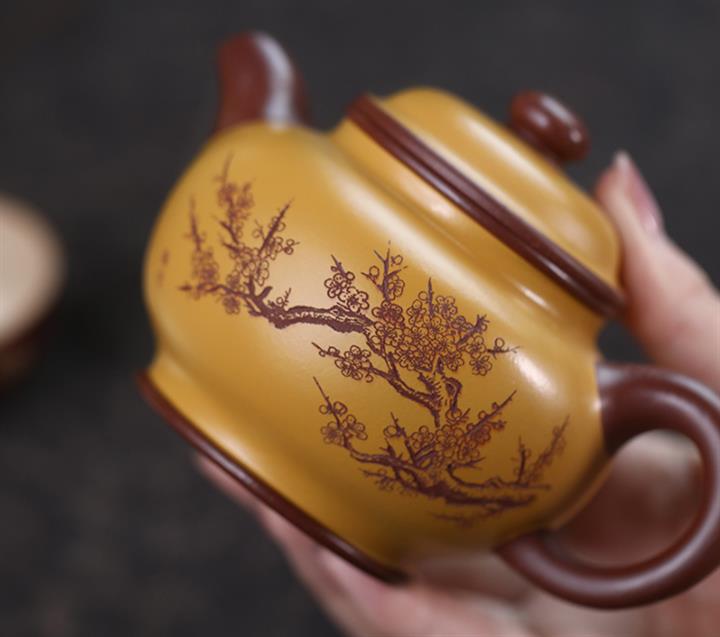黃金段泥竹葉納瓢紫砂壺POT5248