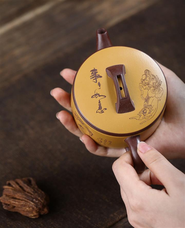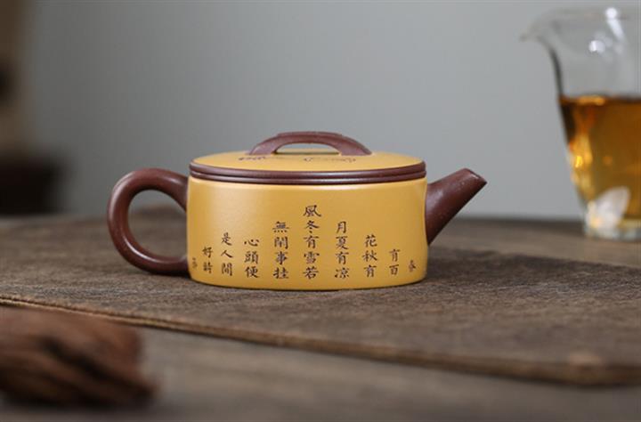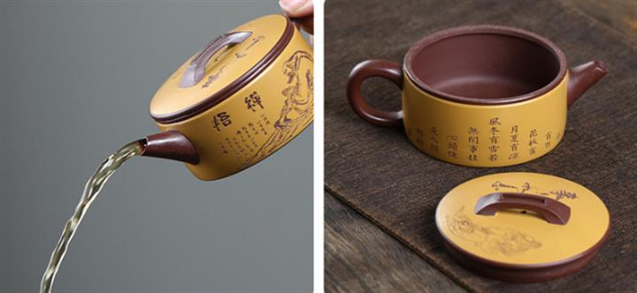 【泥料特點】砂土氣重,似淳實農民,日久使用,漸露鋒芒,養成變化,溫潤莊重。紫砂是壹種雙重氣孔結構的多孔性材質,氣孔微細,密度高。用紫砂壺沏茶,不失原味,且香不渙散,得茶之真香真味。紫砂使用越久,壺身色澤越發光亮照人,氣韻溫雅。紫砂壺長久使用器身會因撫摸擦拭,變得越發溫潤光澤。