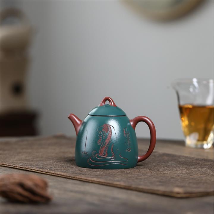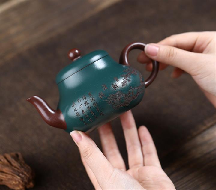 170cc原礦紫泥綠泥粉漿復古秦權茶壺POT8602