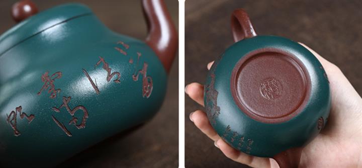 【泥料特點】砂土氣重,似淳實農民,日久使用,漸露鋒芒,養成變化,溫潤莊重。紫砂是壹種雙重氣孔結構的多孔性材質,氣孔微細,密度高。用紫砂壺沏茶,不失原味,且香不渙散,得茶之真香真味。紫砂使用越久,壺身色澤越發光亮照人,氣韻溫雅。紫砂壺長久使用器身會因撫摸擦拭,變得越發溫潤光澤。