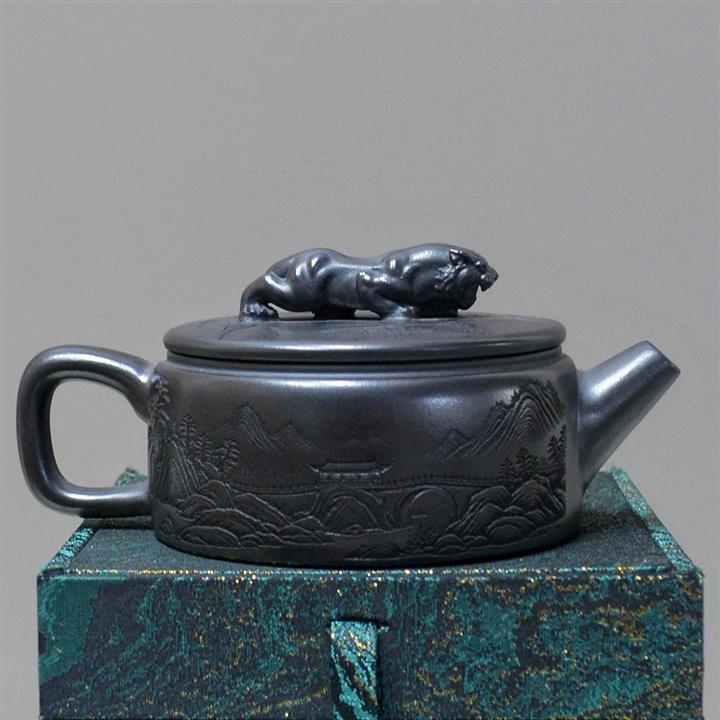 250cc原礦玄鐵石黃伏虎漢瓦茶壺POT8626