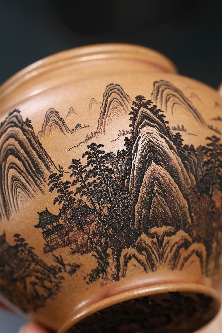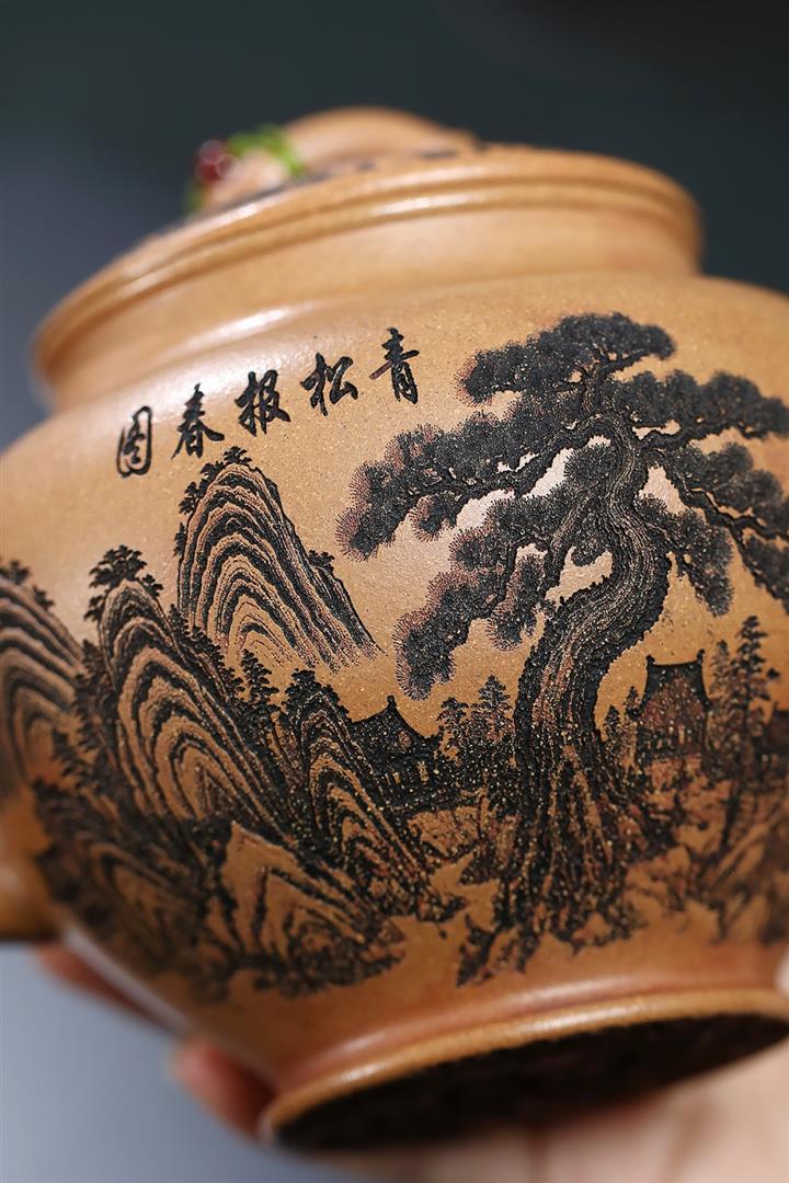 紫砂紫泥泥繪秦權紫砂壺POT5827