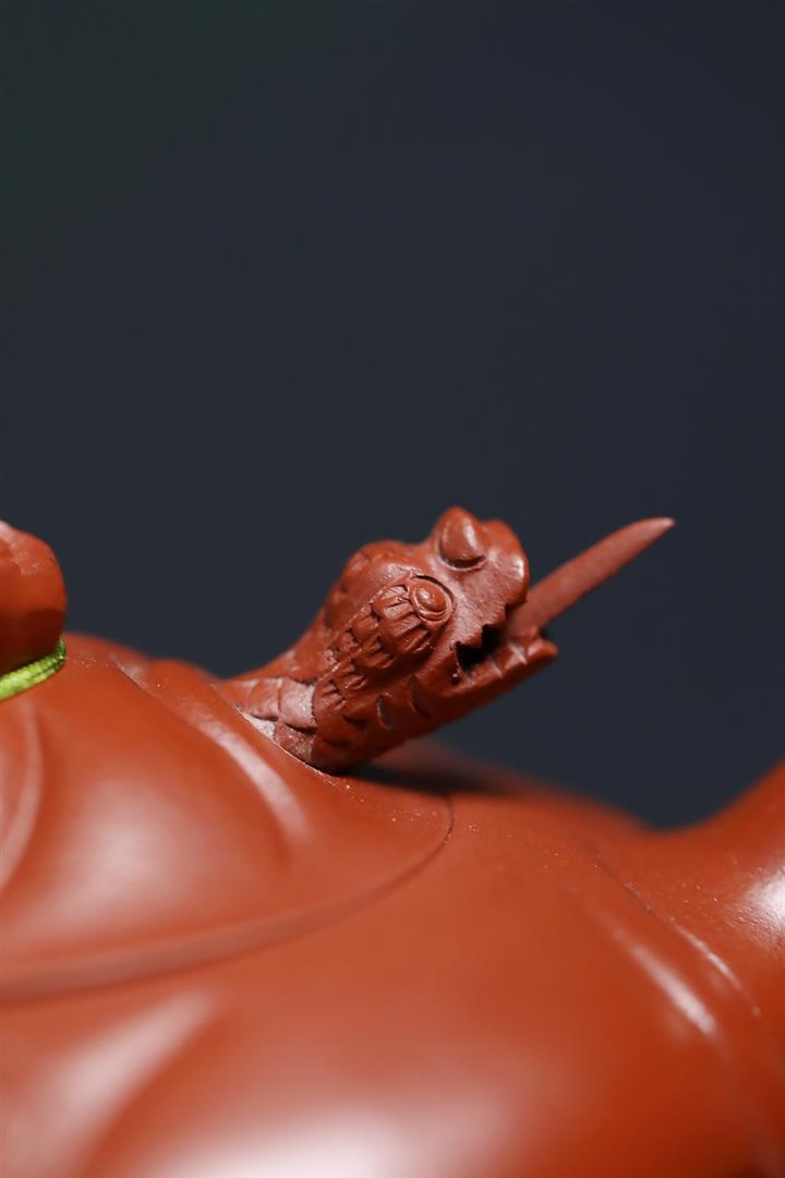 【作品介紹】此款壺形線條流暢,壺把,壺嘴,壺身壹氣呵成栩栩如生,是收藏把玩的好壺,泥料色澤古樸典雅,日久使用,漸露鋒芒,養成變化快,溫潤莊重,用其泡茶,使用的年代久,壺身就溫潤,泡出來的茶湯也就醇郁芳馨。