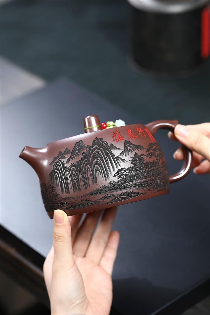 【作品介紹】此款壺形線條流暢,壺把,壺嘴,壺身壹氣呵成栩栩如生,是收藏把玩的好壺,泥料色澤古樸典雅,日久使用,漸露鋒芒,養成變化快,溫潤莊重,用其泡茶,使用的年代久,壺身就溫潤,泡出來的茶湯也就醇郁芳馨。