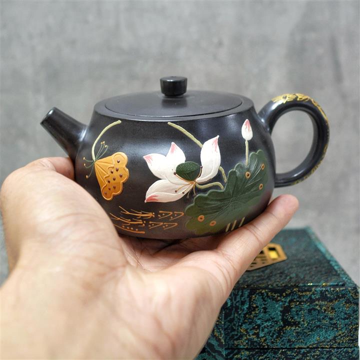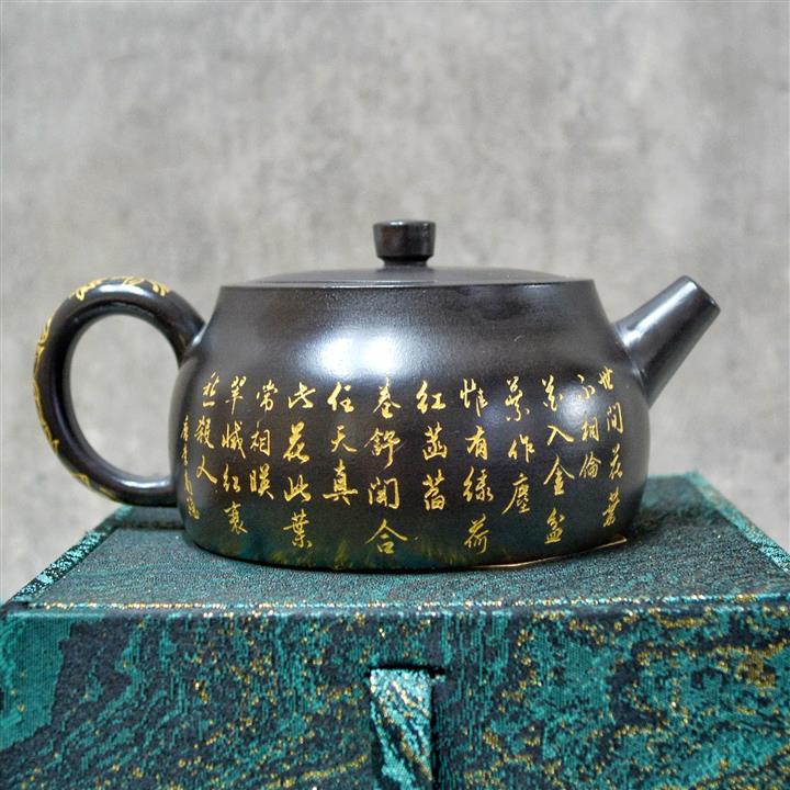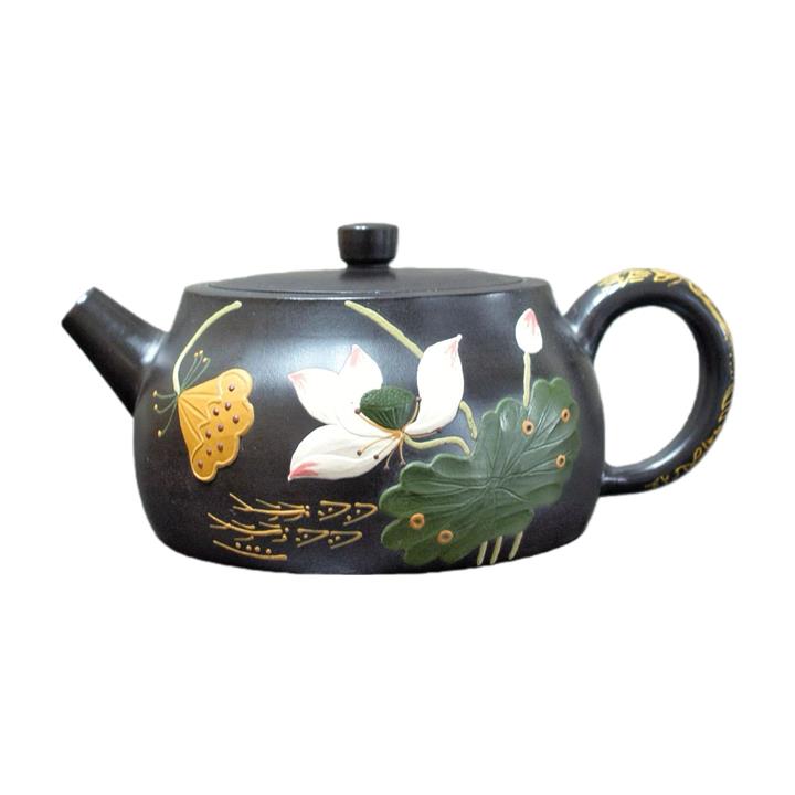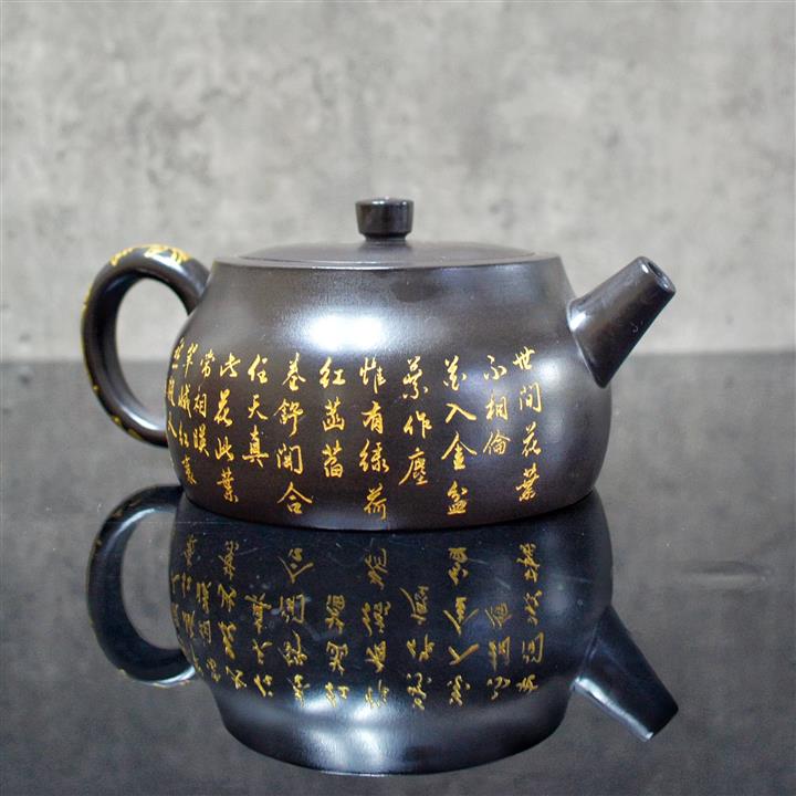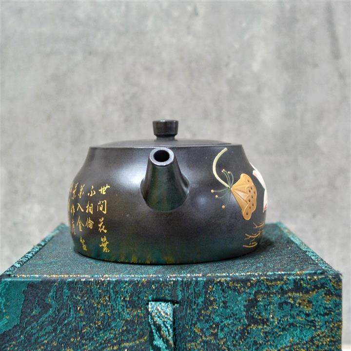 270cc原礦玄鐵石黃荷韻井欄泡茶壺POT8659