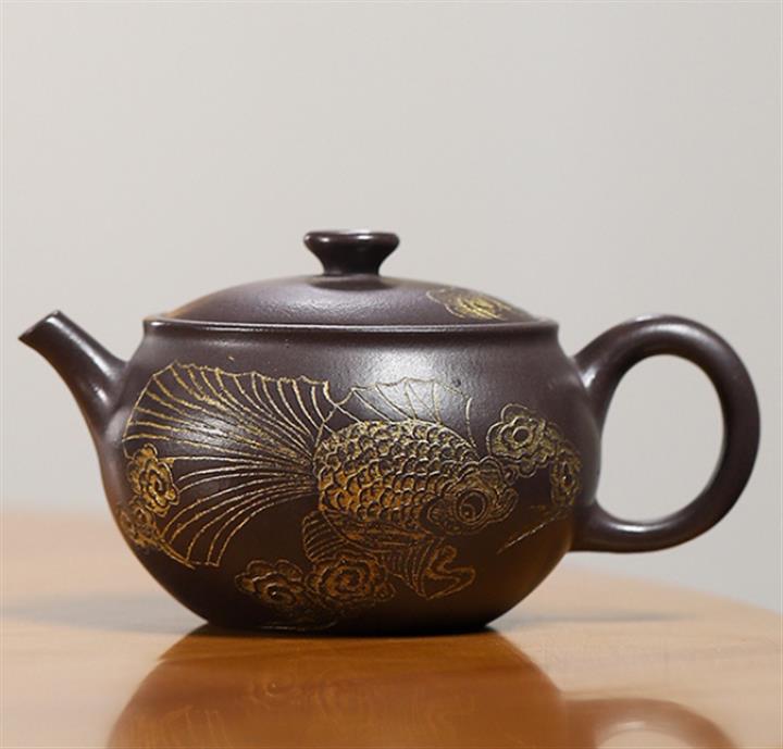 150cc原礦玄鐵石黃泥金玉滿堂茶壺POT9184