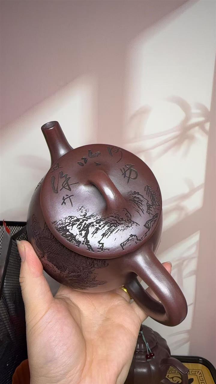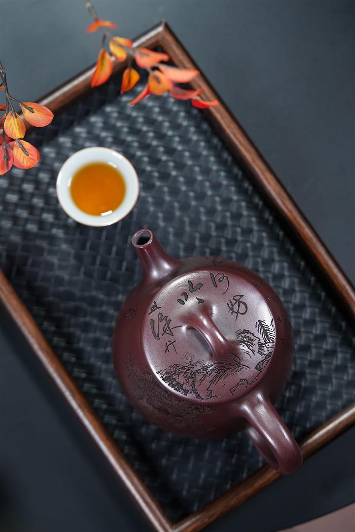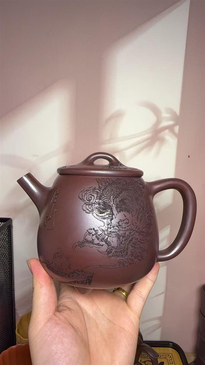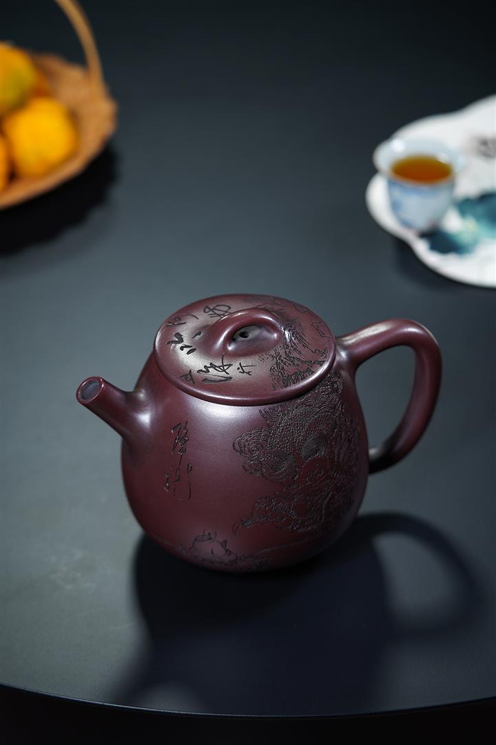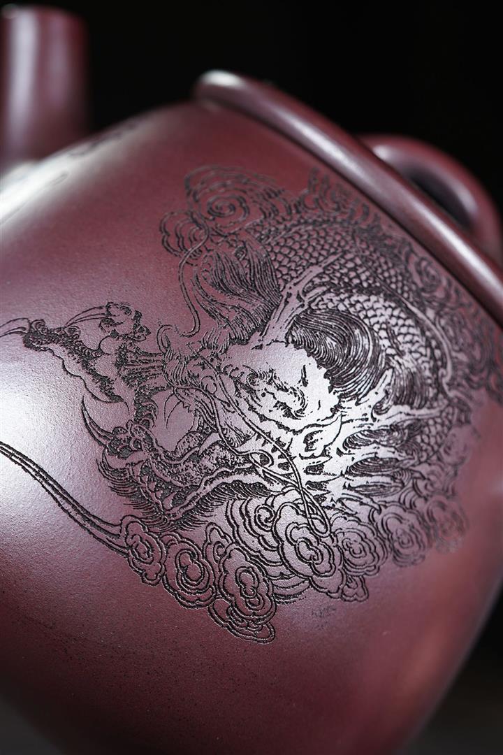 原礦大紅袍潘壺五牛圖紫砂壺POT4602