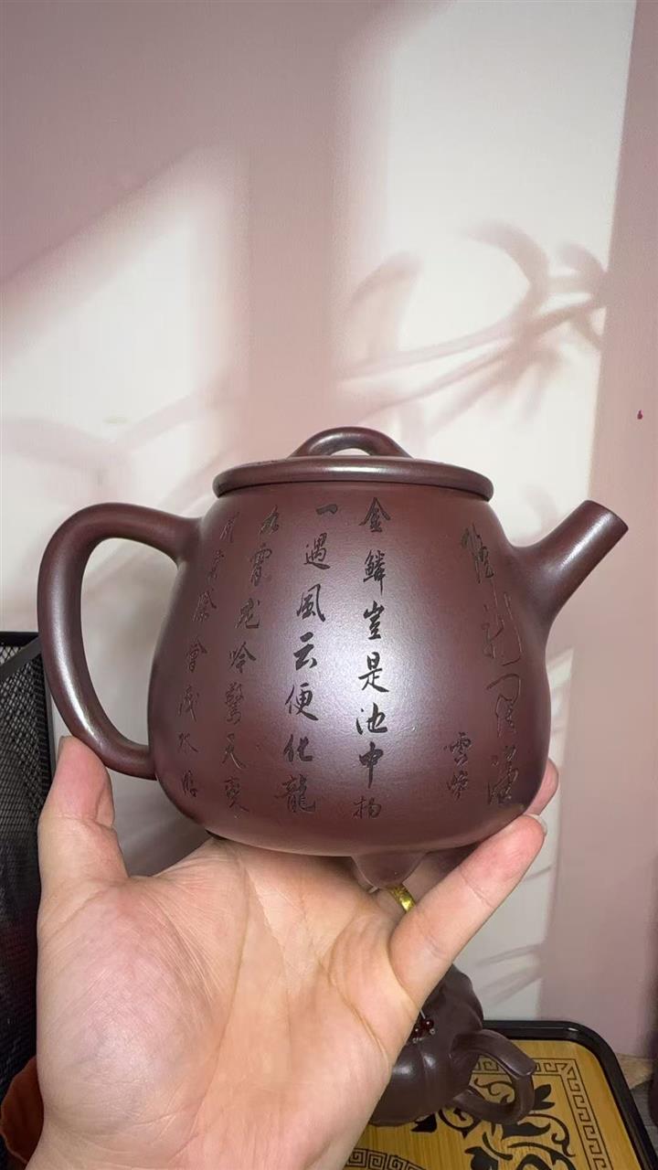 【作品介紹】此款壺形線條流暢,壺把,壺嘴,壺身壹氣呵成栩栩如生,是收藏把玩的好壺,泥料色澤古樸典雅,日久使用,漸露鋒芒,養成變化快,溫潤莊重,用其泡茶,使用的年代久,壺身就溫潤,泡出來的茶湯也就醇郁芳馨。