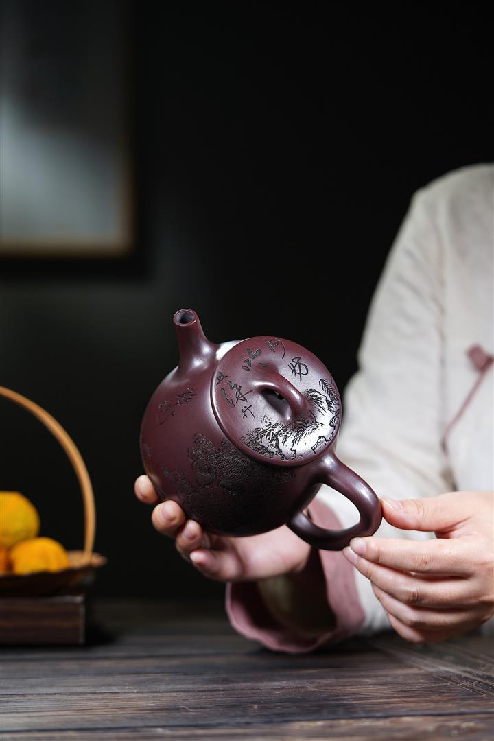 【泥料特點】砂土氣重,似淳實農民,日久使用,漸露鋒芒,養成變化,溫潤莊重。紫砂是壹種雙重氣孔結構的多孔性材質,氣孔微細,密度高。用紫砂壺沏茶,不失原味,且香不渙散,得茶之真香真味。紫砂使用越久,壺身色澤越發光亮照人,氣韻溫雅。紫砂壺長久使用器身會因撫摸擦拭,變得越發溫潤光澤。