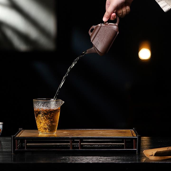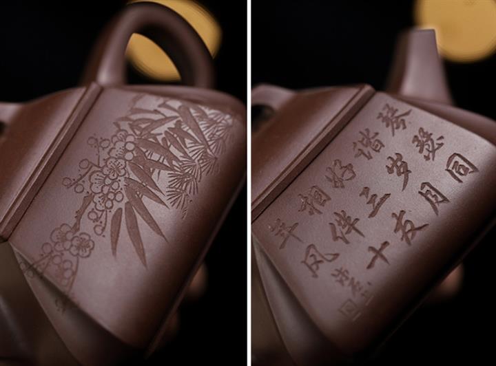 【泥料特點】砂土氣重,似淳實農民,日久使用,漸露鋒芒,養成變化,溫潤莊重。紫砂是壹種雙重氣孔結構的多孔性材質,氣孔微細,密度高。用紫砂壺沏茶,不失原味,且香不渙散,得茶之真香真味。紫砂使用越久,壺身色澤越發光亮照人,氣韻溫雅。紫砂壺長久使用器身會因撫摸擦拭,變得越發溫潤光澤。