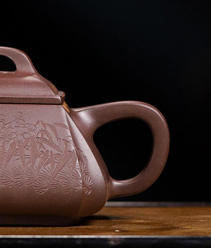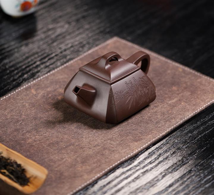 350cc原礦龍骨金砂特高溫四方竹段茶壺POT8637