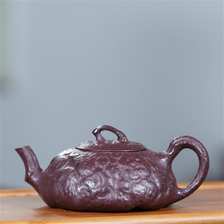 【泥料特點】砂土氣重,似淳實農民,日久使用,漸露鋒芒,養成變化,溫潤莊重。紫砂是壹種雙重氣孔結構的多孔性材質,氣孔微細,密度高。用紫砂壺沏茶,不失原味,且香不渙散,得茶之真香真味。紫砂使用越久,壺身色澤越發光亮照人,氣韻溫雅。紫砂壺長久使用器身會因撫摸擦拭,變得越發溫潤光澤。