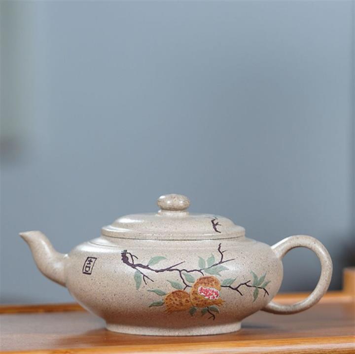 原礦豆青泥彩繪漢瓦茶壺POT7877