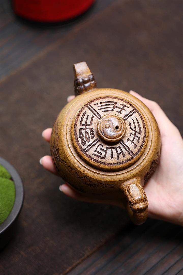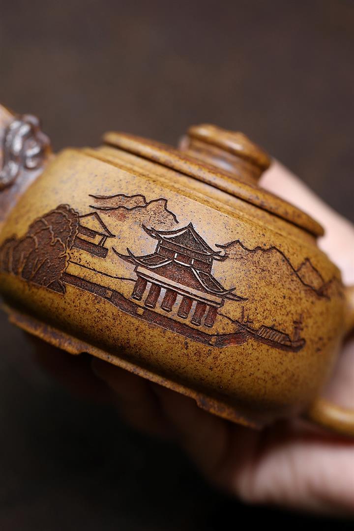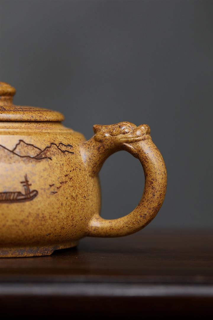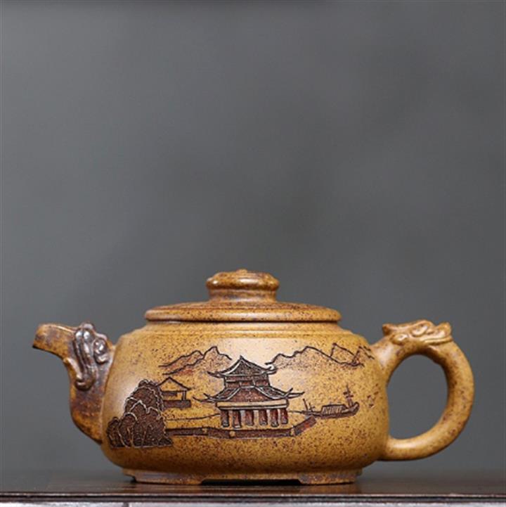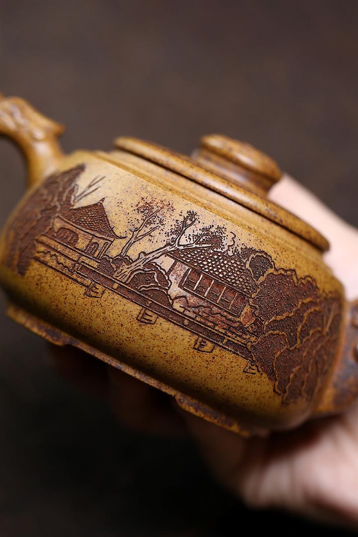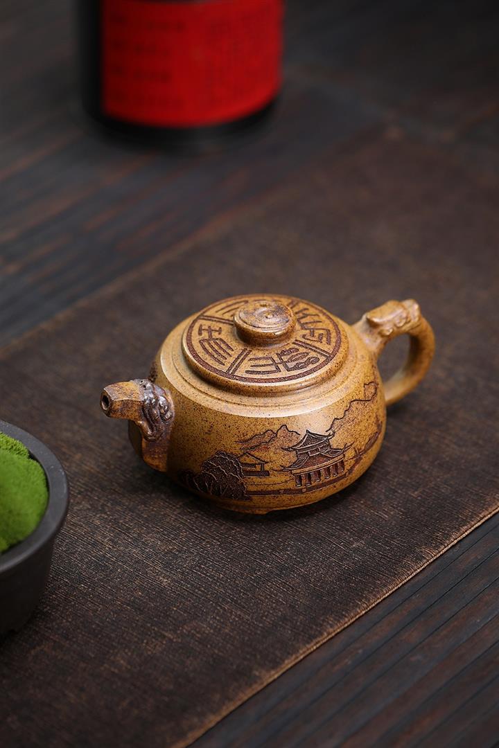 原礦石黃泥手工鎏金寒江紫砂壺POT6711