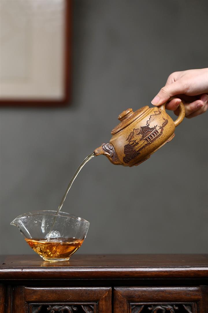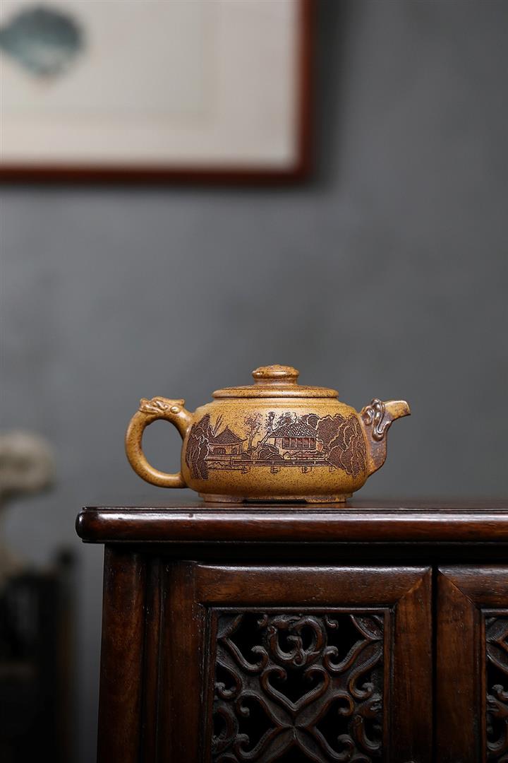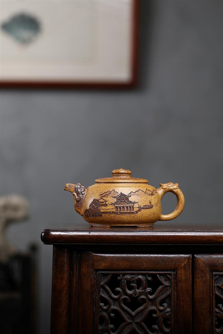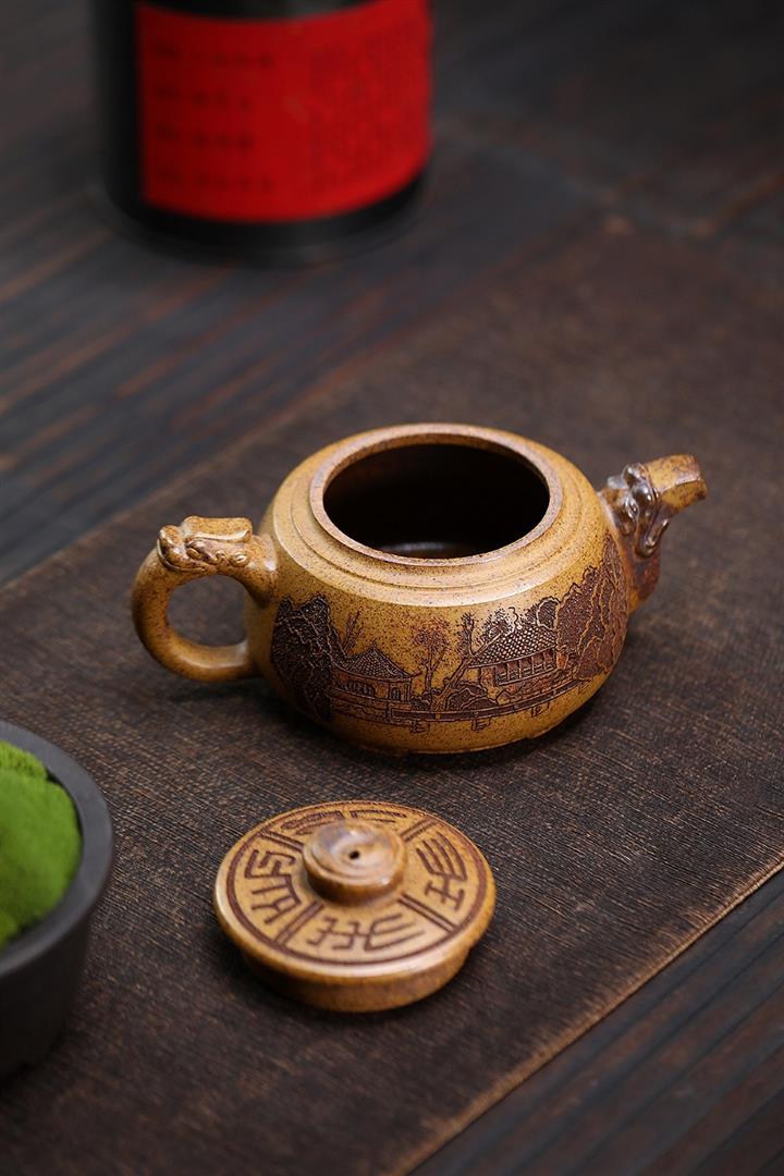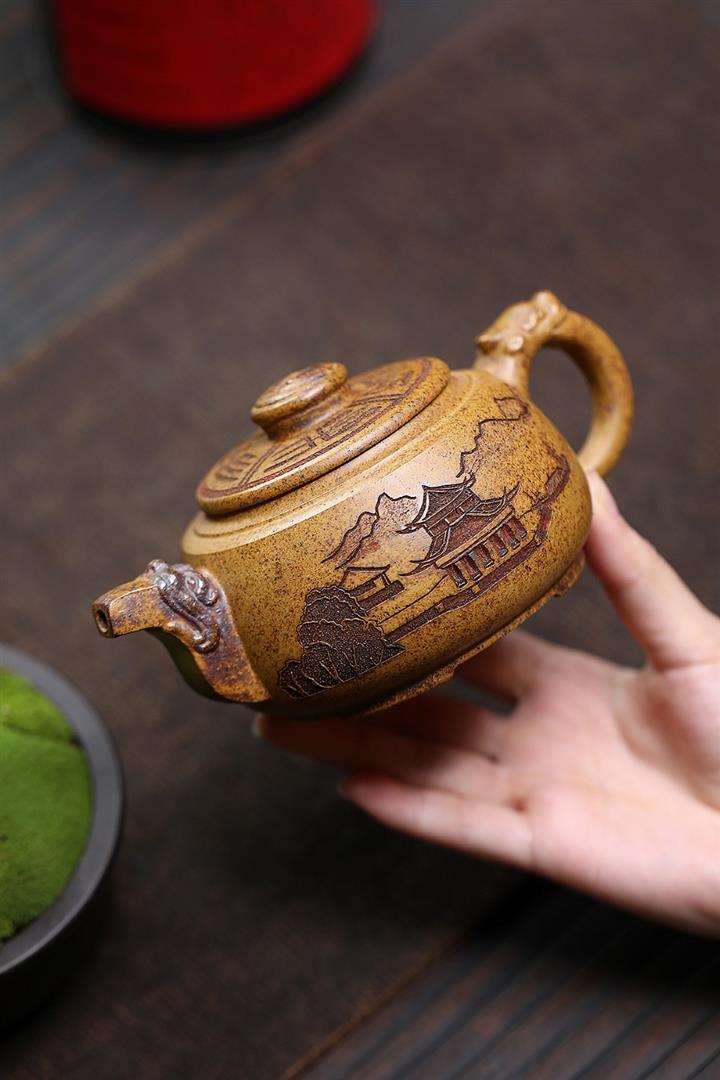 原礦石黃泥手工鎏金寒江紫砂壺POT6711