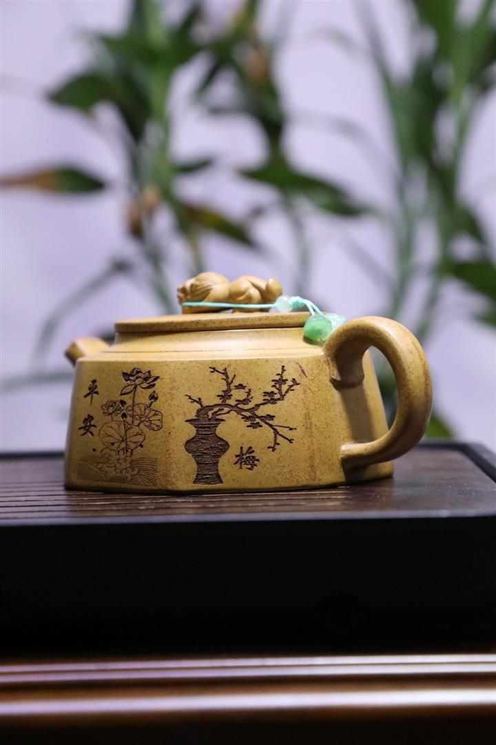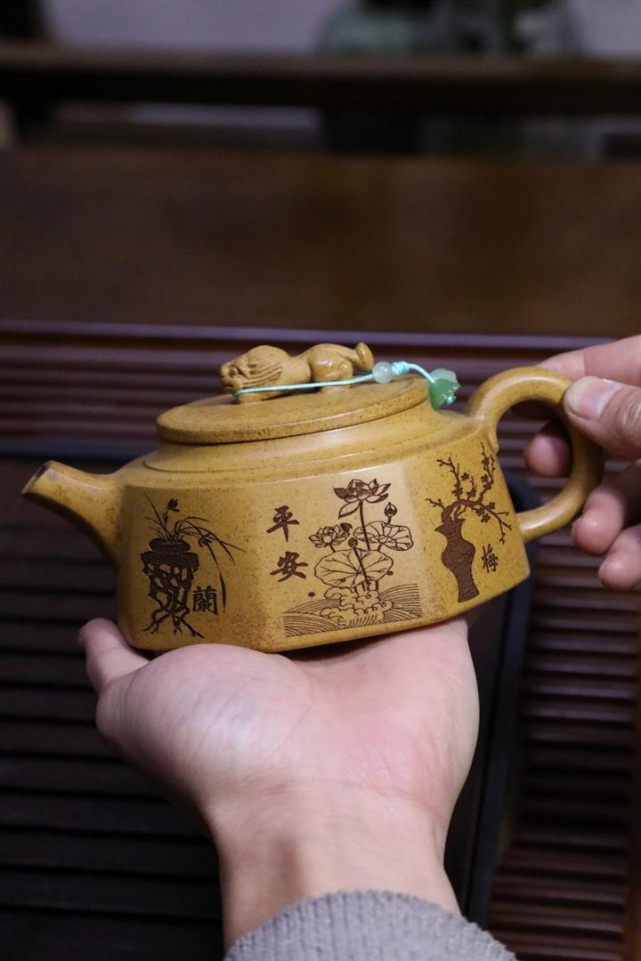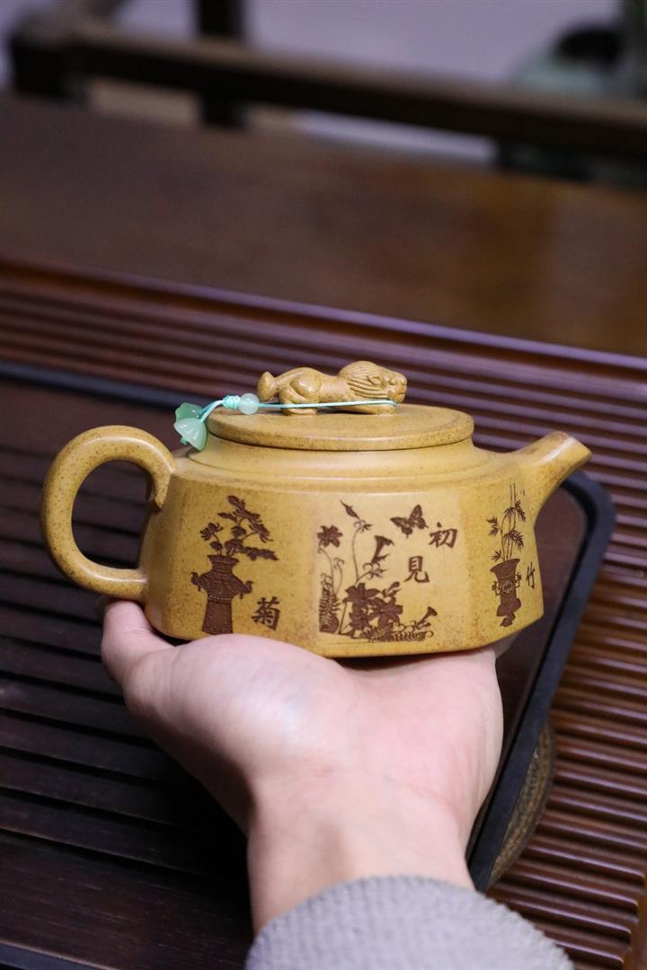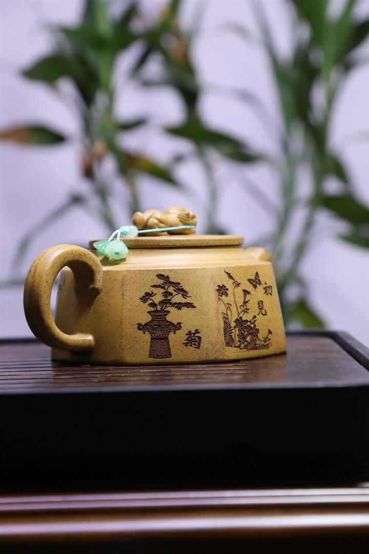 【作品介紹】此款壺形線條流暢,壺把,壺嘴,壺身壹氣呵成栩栩如生,是收藏把玩的好壺,泥料色澤古樸典雅,日久使用,漸露鋒芒,養成變化快,溫潤莊重,用其泡茶,使用的年代久,壺身就溫潤,泡出來的茶湯也就醇郁芳馨。