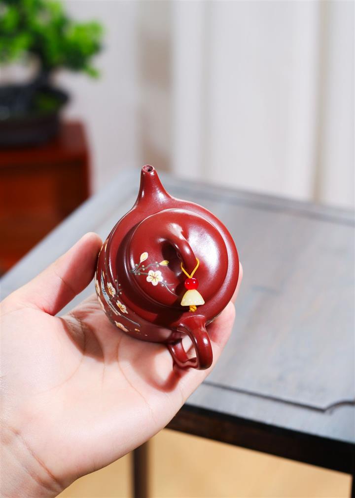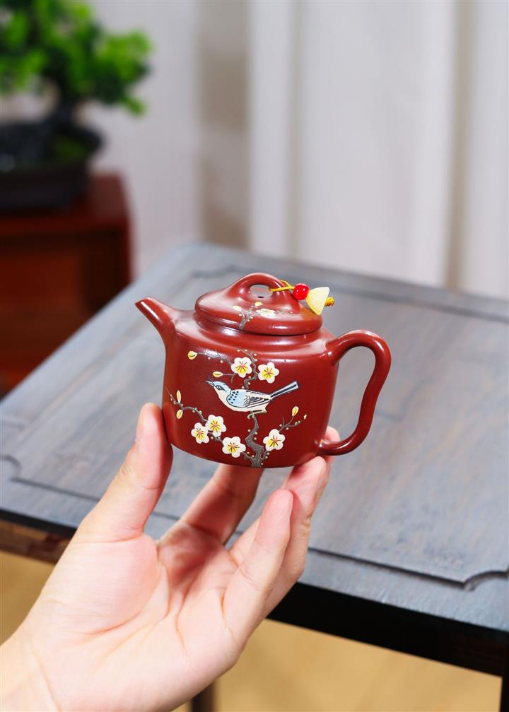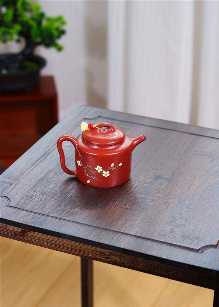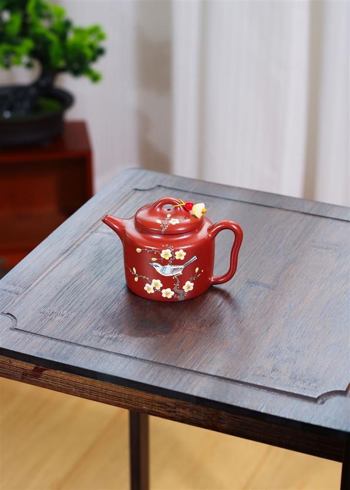 110cc原礦雞血大紅袍喜上枝頭汲直茶壺POT8743