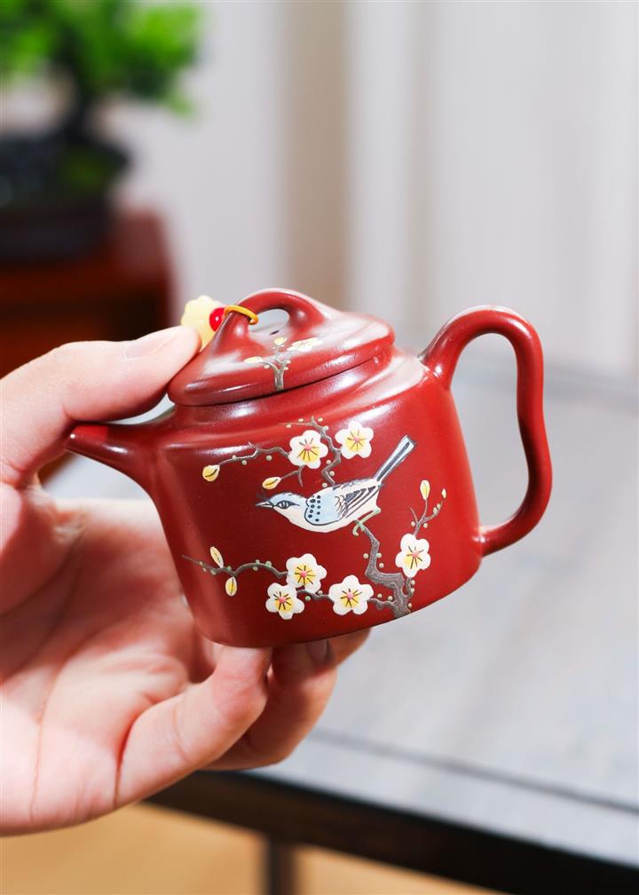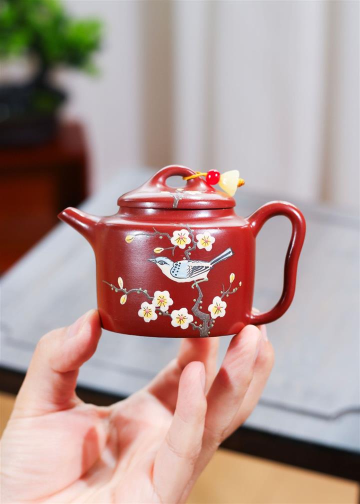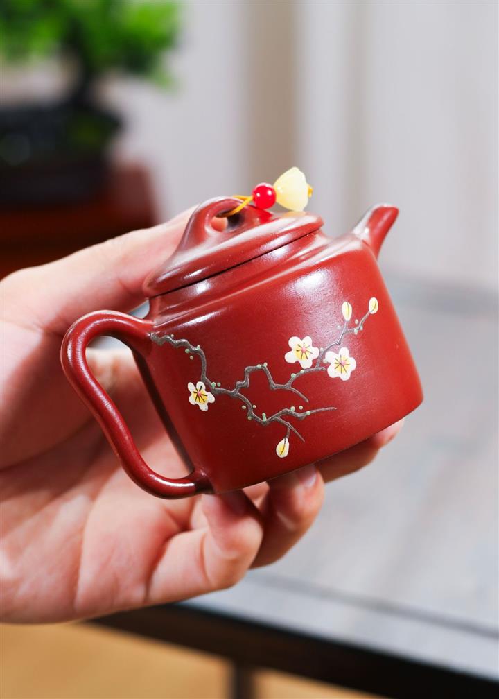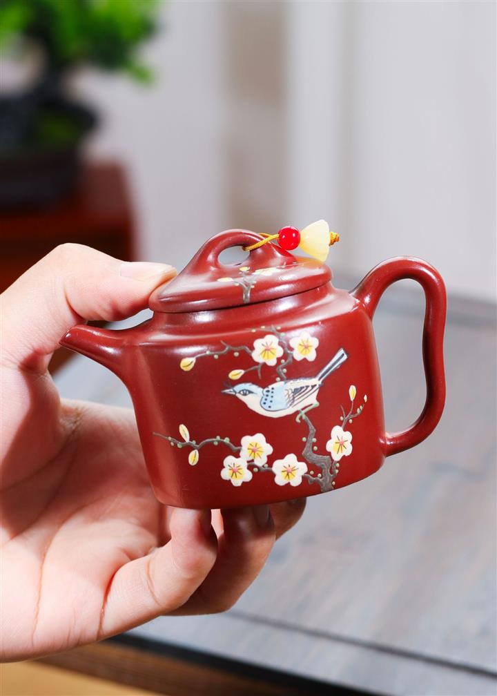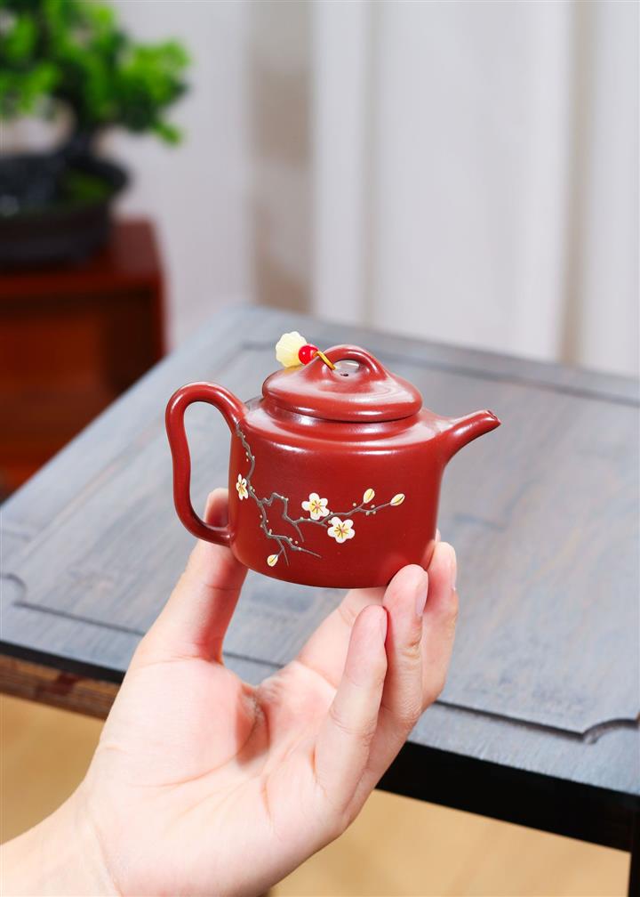 110cc原礦雞血大紅袍喜上枝頭汲直茶壺POT8743