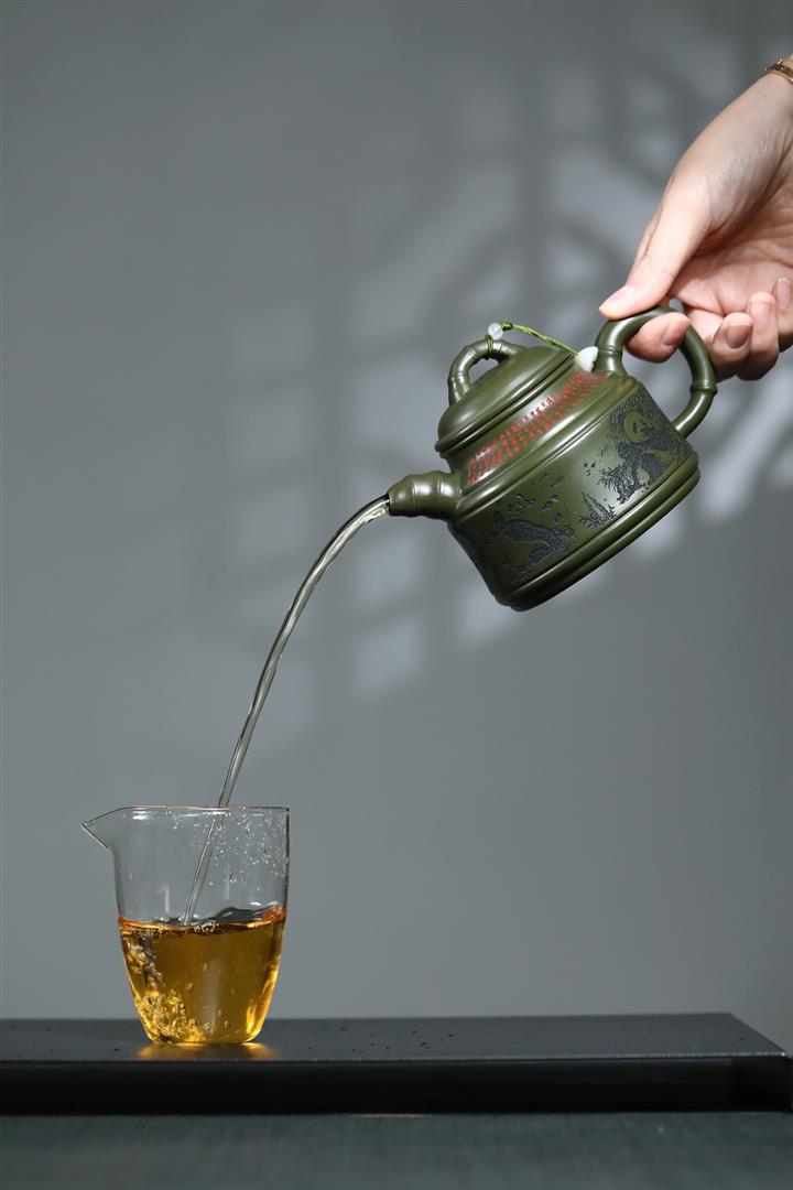 【泥料特點】砂土氣重,似淳實農民,日久使用,漸露鋒芒,養成變化,溫潤莊重。紫砂是壹種雙重氣孔結構的多孔性材質,氣孔微細,密度高。用紫砂壺沏茶,不失原味,且香不渙散,得茶之真香真味。紫砂使用越久,壺身色澤越發光亮照人,氣韻溫雅。紫砂壺長久使用器身會因撫摸擦拭,變得越發溫潤光澤。
