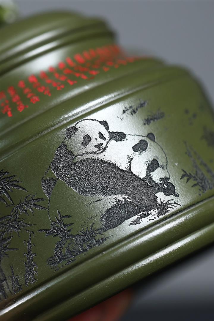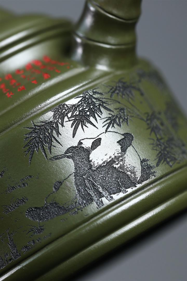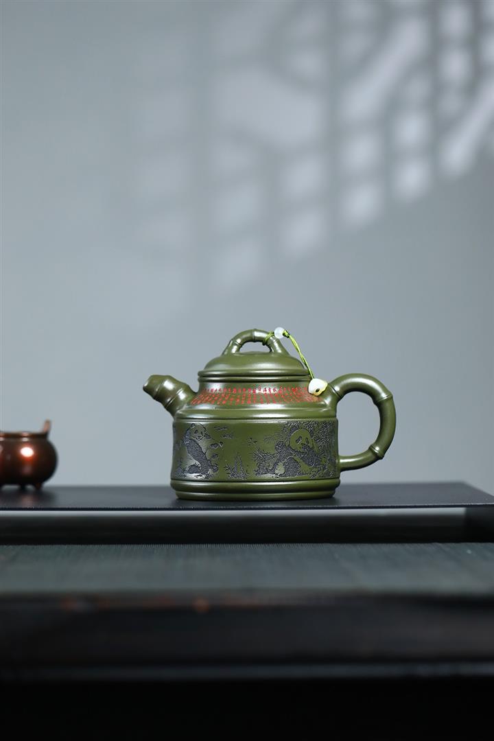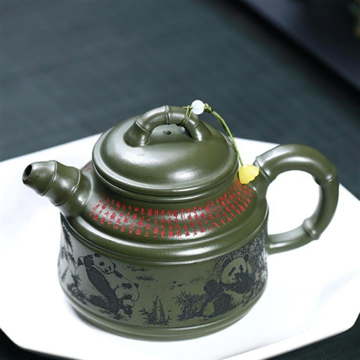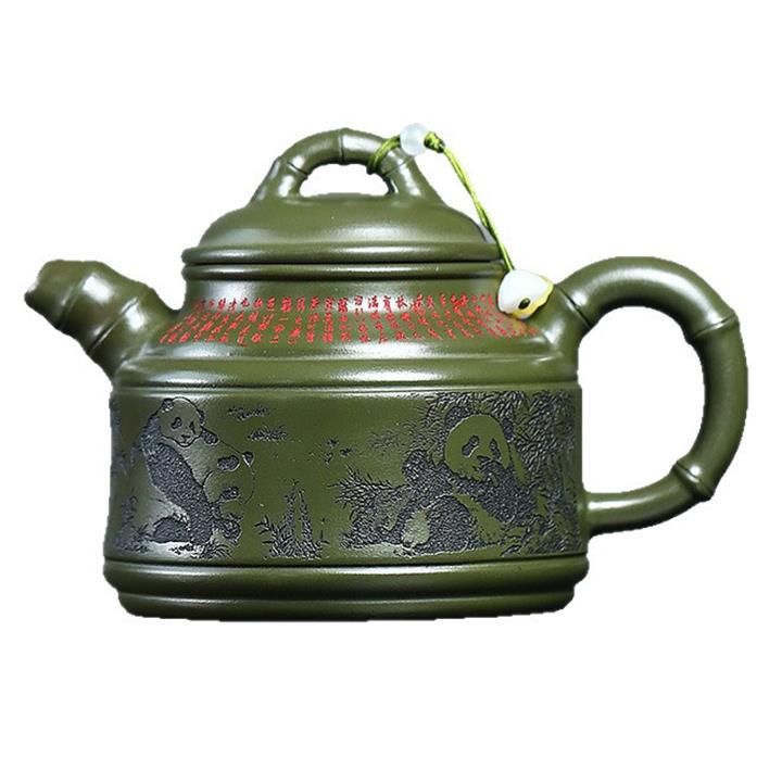 400cc原礦綠泥竹鼎熊韻茶壺POT8747