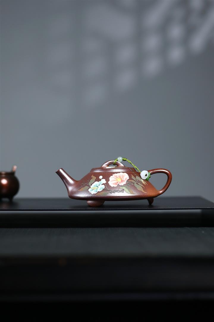 【泥料特點】砂土氣重,似淳實農民,日久使用,漸露鋒芒,養成變化,溫潤莊重。紫砂是壹種雙重氣孔結構的多孔性材質,氣孔微細,密度高。用紫砂壺沏茶,不失原味,且香不渙散,得茶之真香真味。紫砂使用越久,壺身色澤越發光亮照人,氣韻溫雅。紫砂壺長久使用器身會因撫摸擦拭,變得越發溫潤光澤。