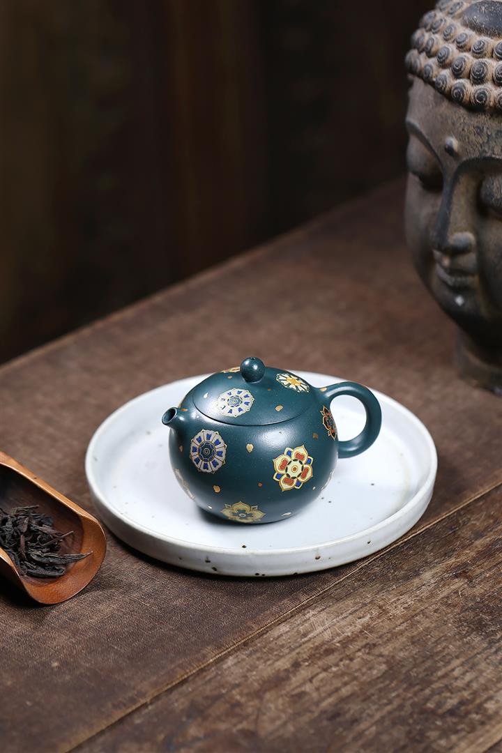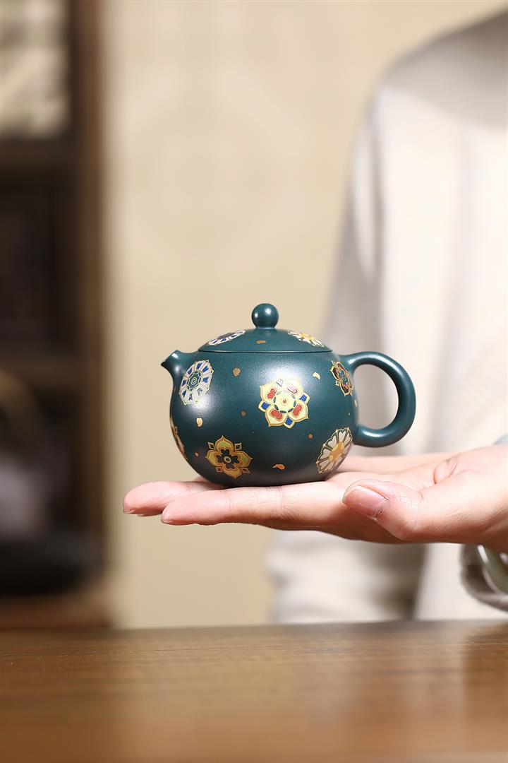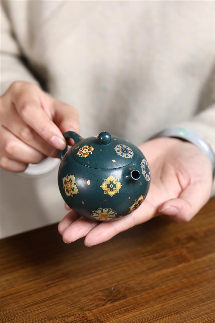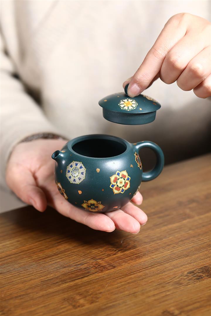 160cc翡翠綠泥寶相花-黛玉西施琺瑯彩茶壺POT8812