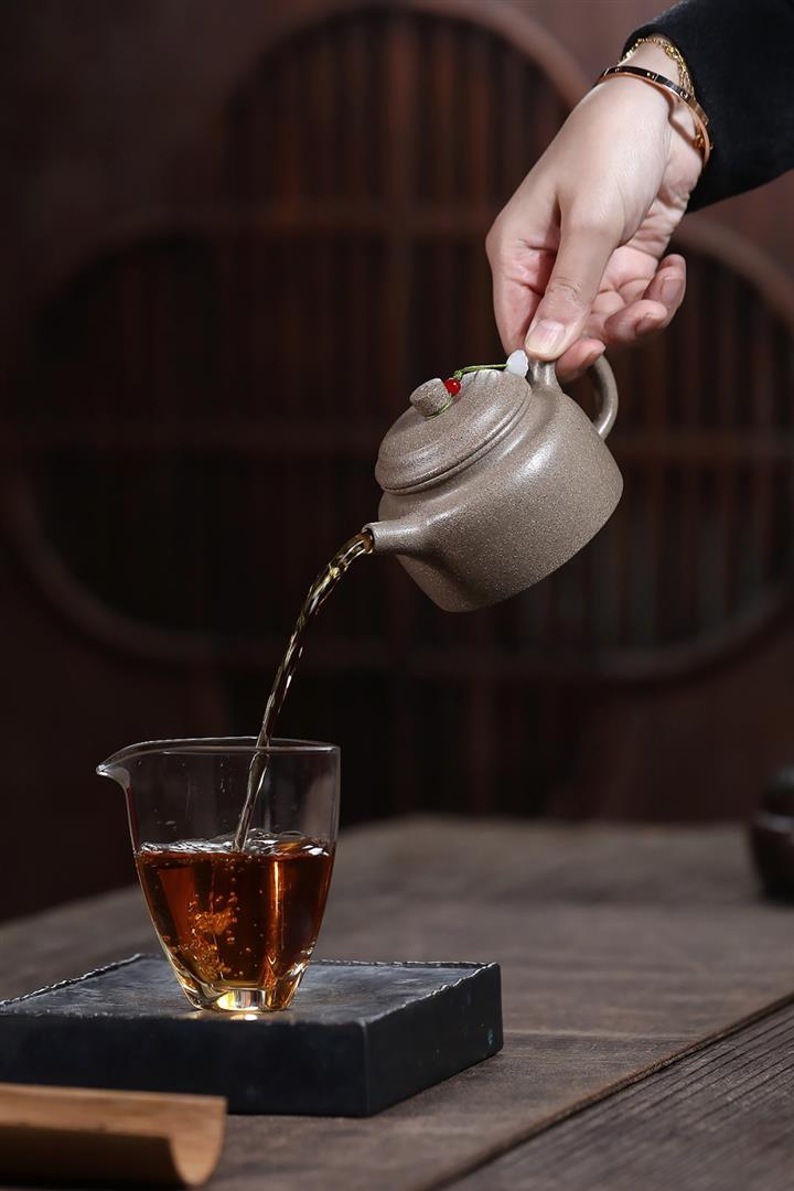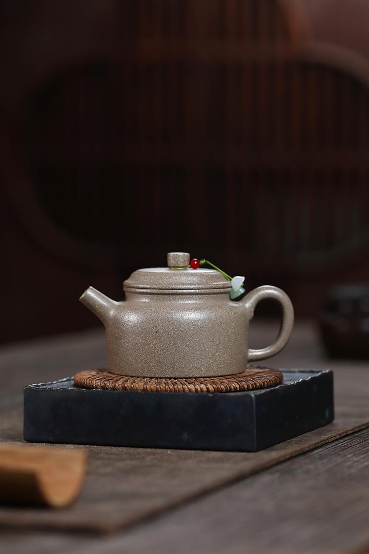 【泥料特點】砂土氣重,似淳實農民,日久使用,漸露鋒芒,養成變化,溫潤莊重。紫砂是壹種雙重氣孔結構的多孔性材質,氣孔微細,密度高。用紫砂壺沏茶,不失原味,且香不渙散,得茶之真香真味。紫砂使用越久,壺身色澤越發光亮照人,氣韻溫雅。紫砂壺長久使用器身會因撫摸擦拭,變得越發溫潤光澤。