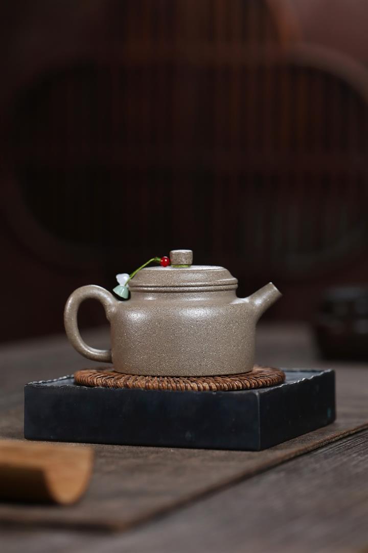 原礦紫泥堆繪蓮蓬秦權茶壺POT7369